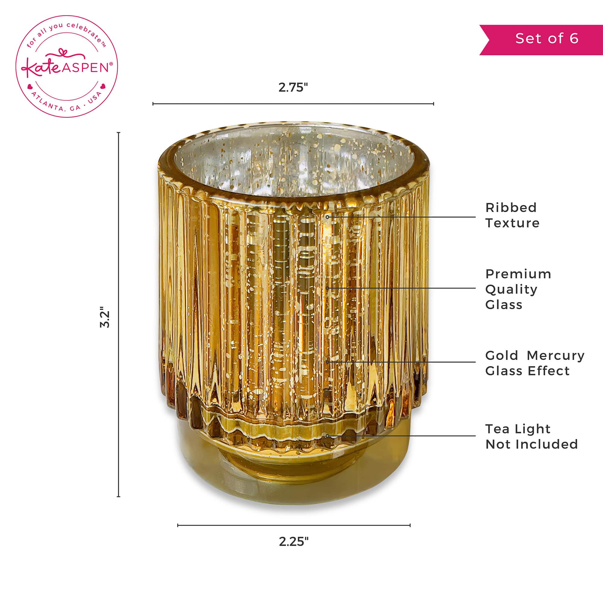Kate Aspen® Gold Vintage Ribbed Glass Tealight Votive Candle Holder Set