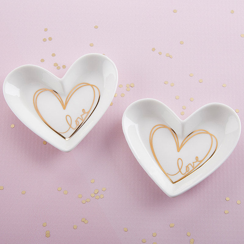 Kate Aspen Jewelry Tray Ring Holder - Set of 12 - Heart Shaped Trinket Dish for Bridal Shower, Weddings, Birthdays Party- Small