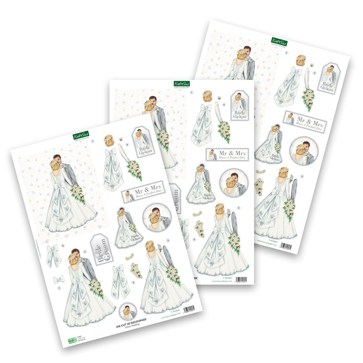 Katy Sue Die Cut Decoupage – White Wedding (Pack Of 3)