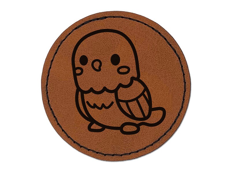 Kawaii Cute Parakeet Budgie Bird Round Iron-On Engraved Faux Leather Patch Applique - 2.5"