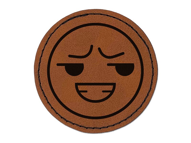 Kawaii Cute Smug Smirk Smile Face Round Iron-On Engraved Faux Leather Patch Applique - 2.5"