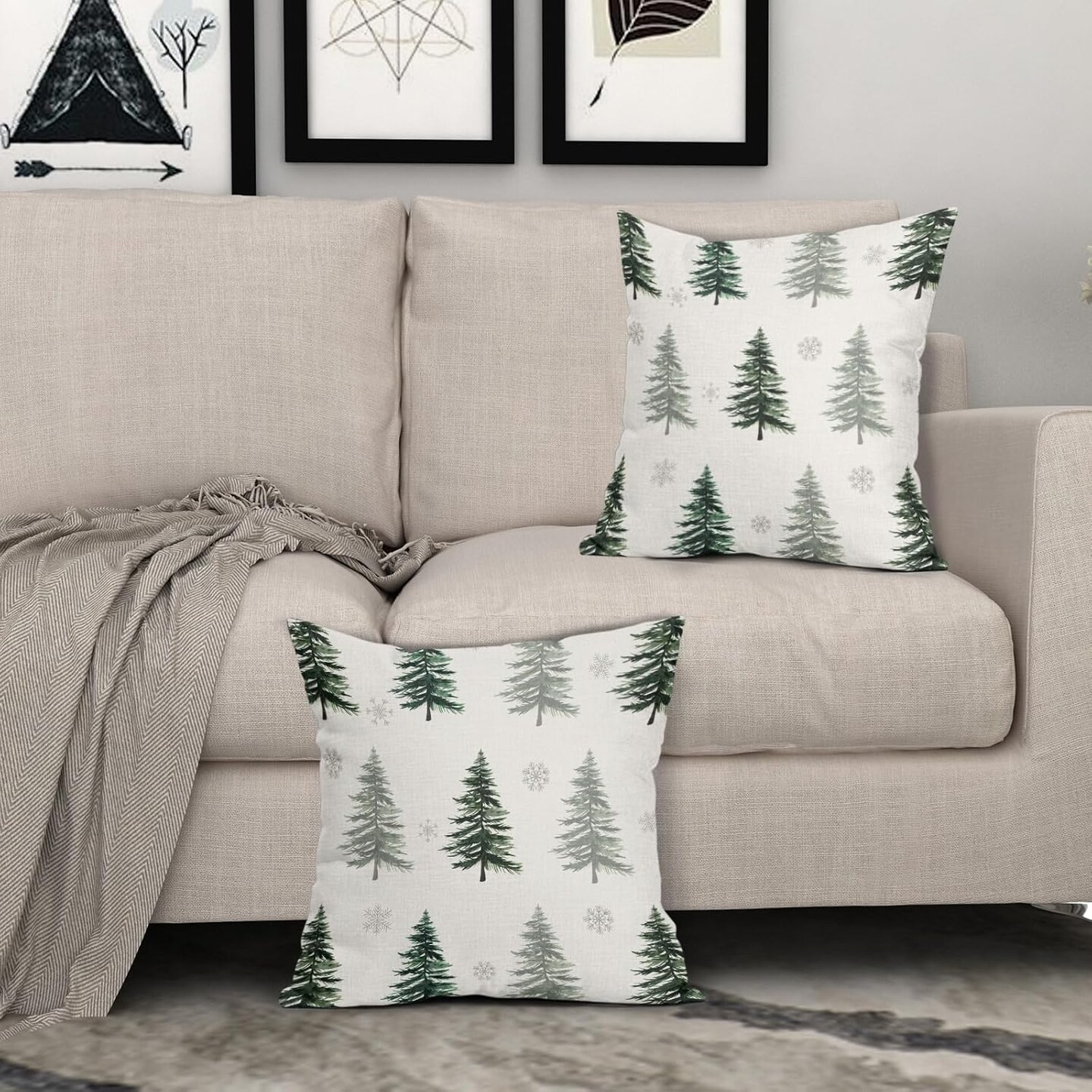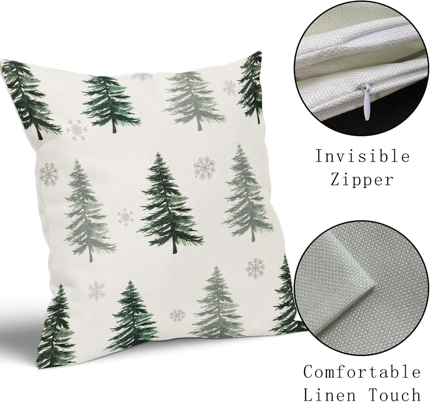Kawani Christmas Pillow Covers 18x18 Inch Set of 2 Green Christmas Tree Snowflake Outdoor Decorative Throw Pillow Covers Winter Holiday Farmhouse Pillowcases Cushion Covers for Couch Decor