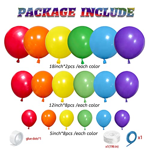 KAWKALSH Rainbow Balloon Arch Kit 111Pcs 18 12 5 Inch Latex Colorful Party Balloons Garland for Birthday Baby Shower Wedding Engagement Anniversary Christmas Party Decorations