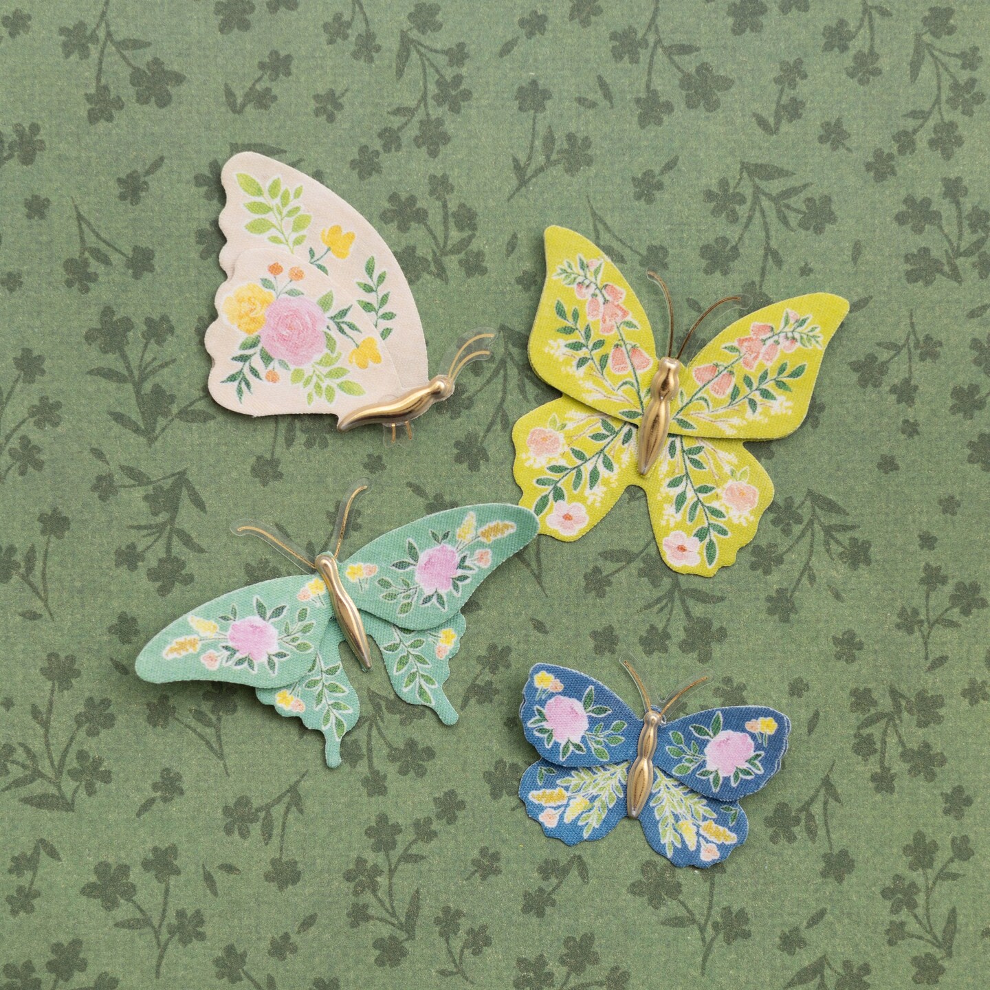 K&Company Antique Garden Dimensional Stickers - Fabric Butterfly, 8pcs