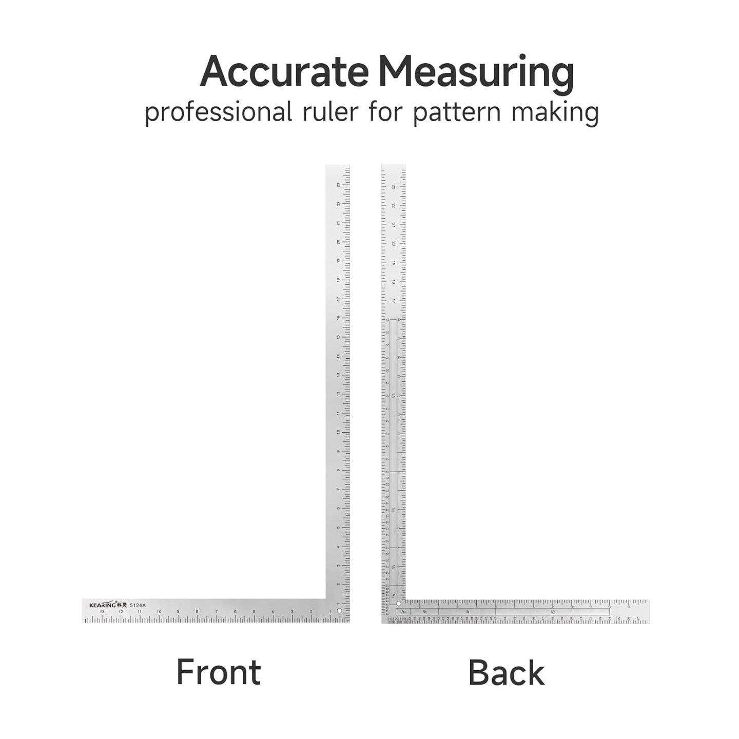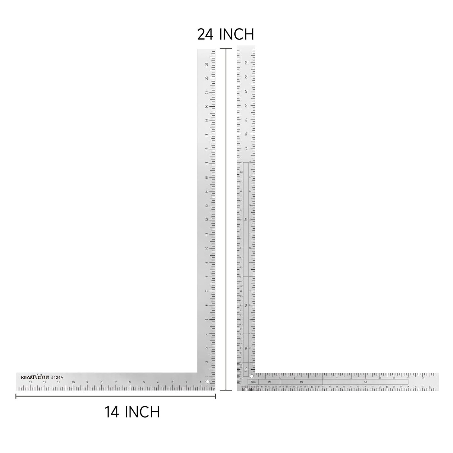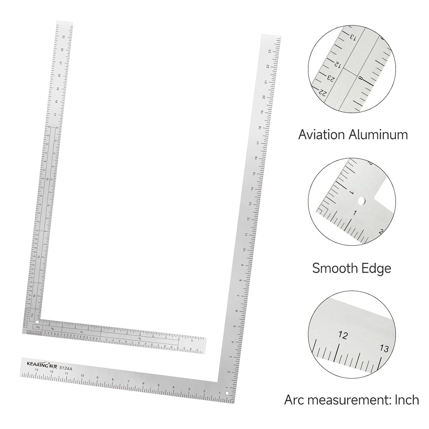 Kearing® L-Square Ruler 24" x 14", Made from Aircraft Aluminum, 1/8” Calibrations Markings On Both Sides
