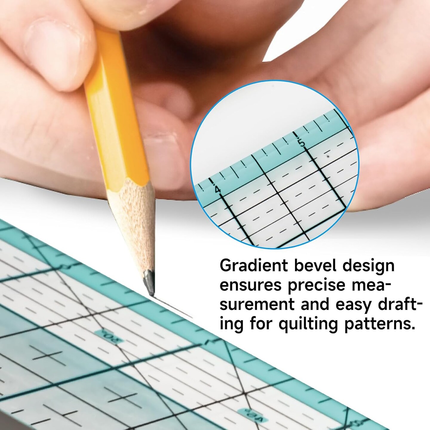 Kearing® Metal Edge Acrylic Quilting Ruler - 3mm Thick with Laser Grid, Sewing and Quilting Supplies with Cutting Edge, Non-Slip Backing for Rotary Cutter & Fabric Cutting