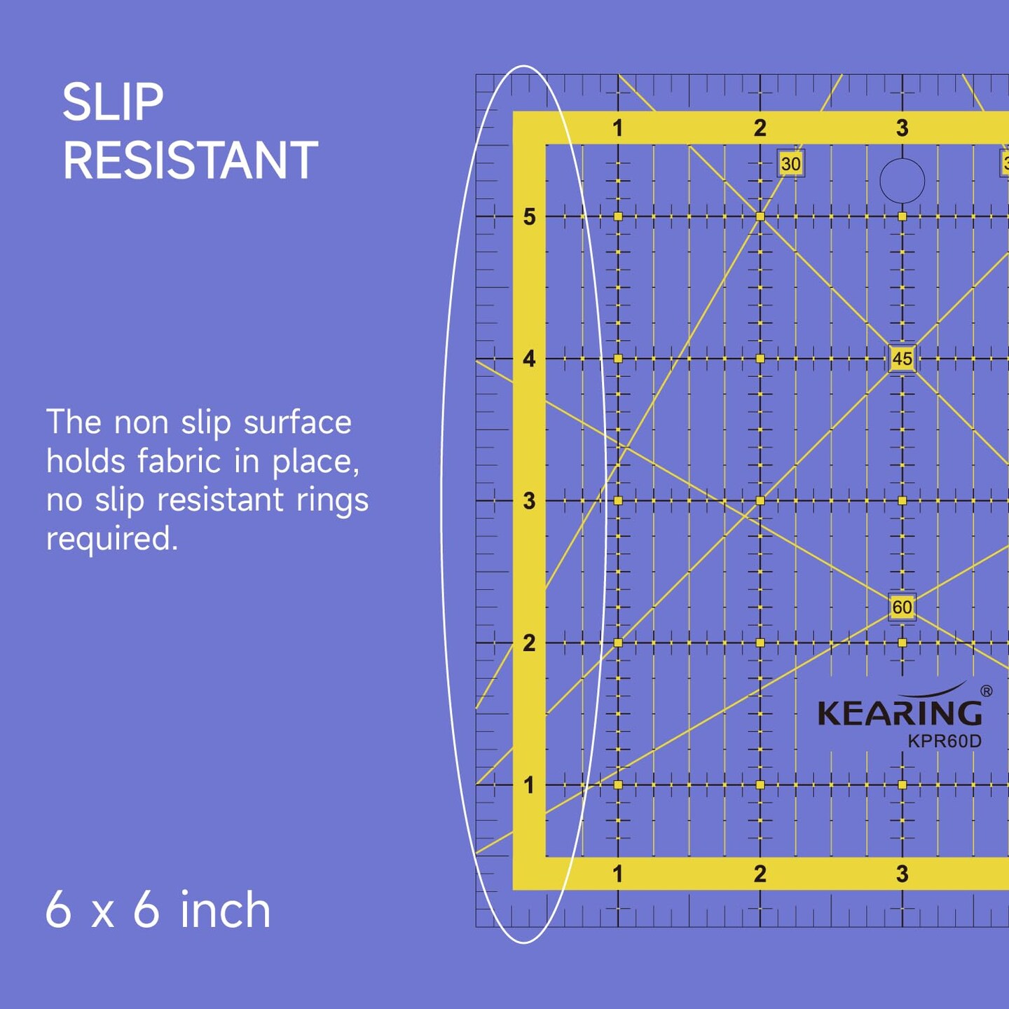 Kearing® Patchwork Quilting Ruler, Non-Slip Acrylic Sewing Ruler for Cutting Fabric, Quilting Square Ruler, Assorted Sizes
