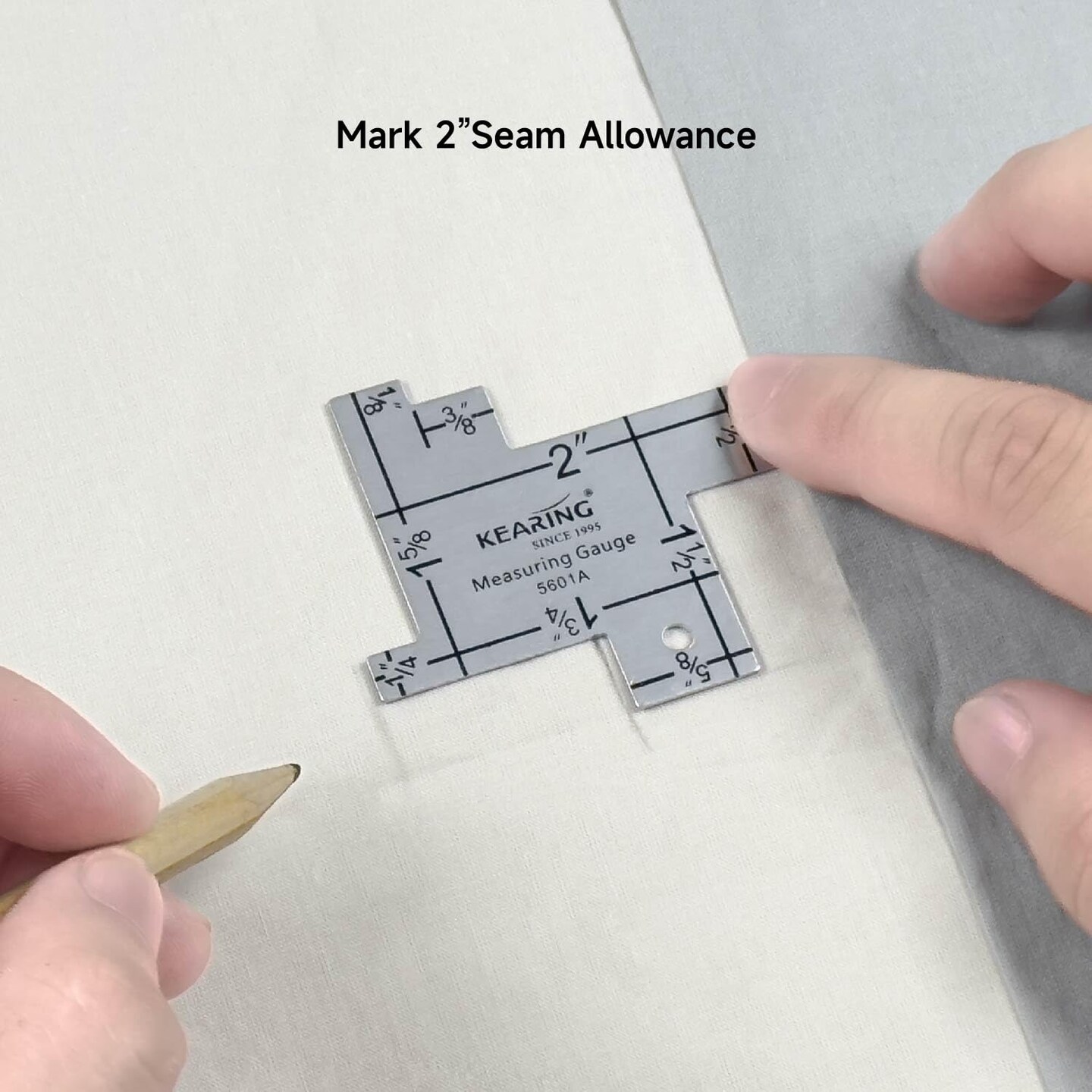 Kearing® Seam Gauge for Sewing or Quilting, 1/8" to 2" Aluminum 14-in-1 Measuring Gauge