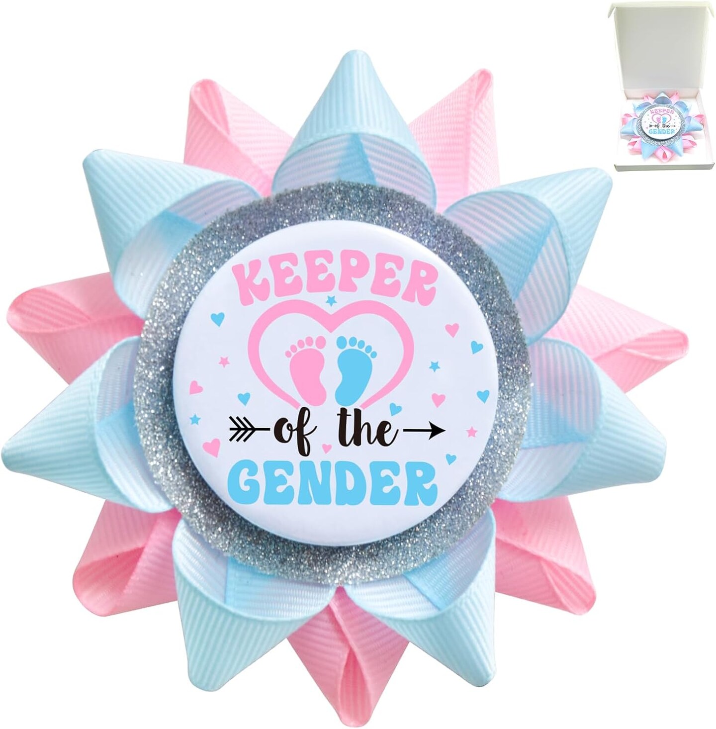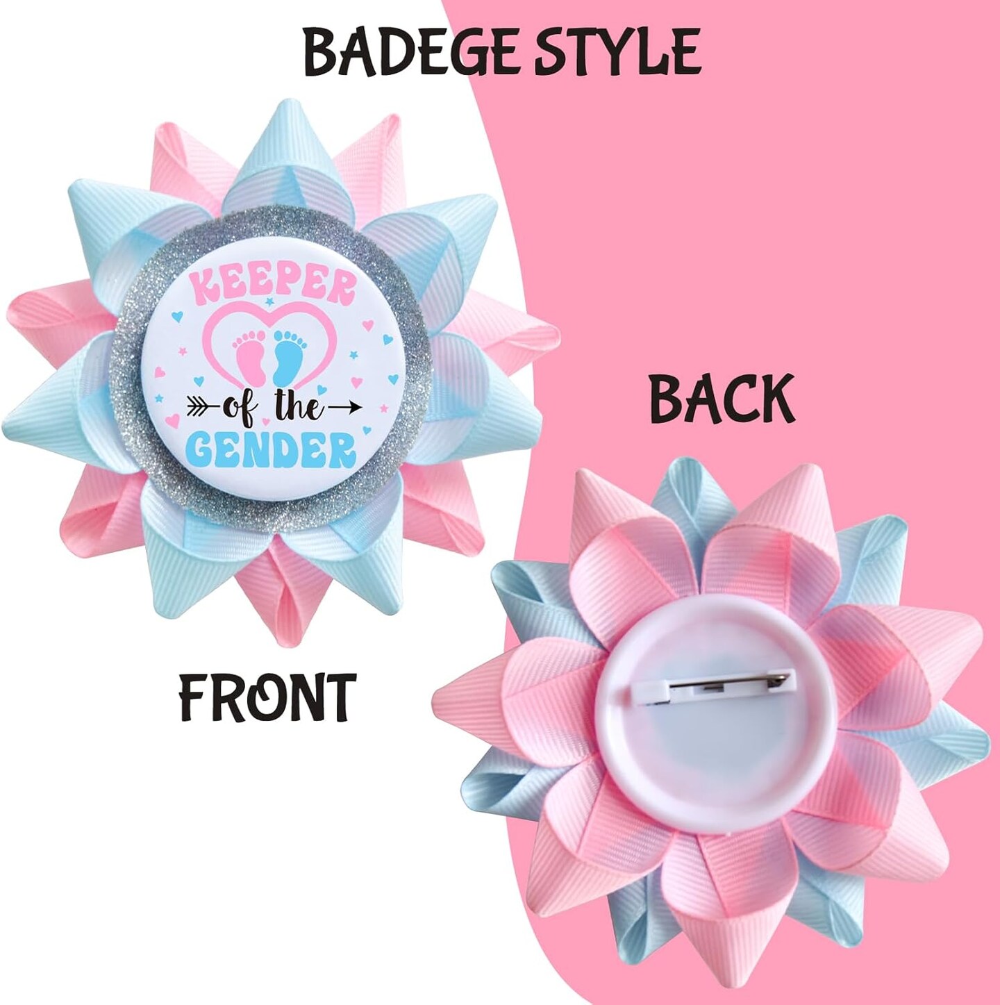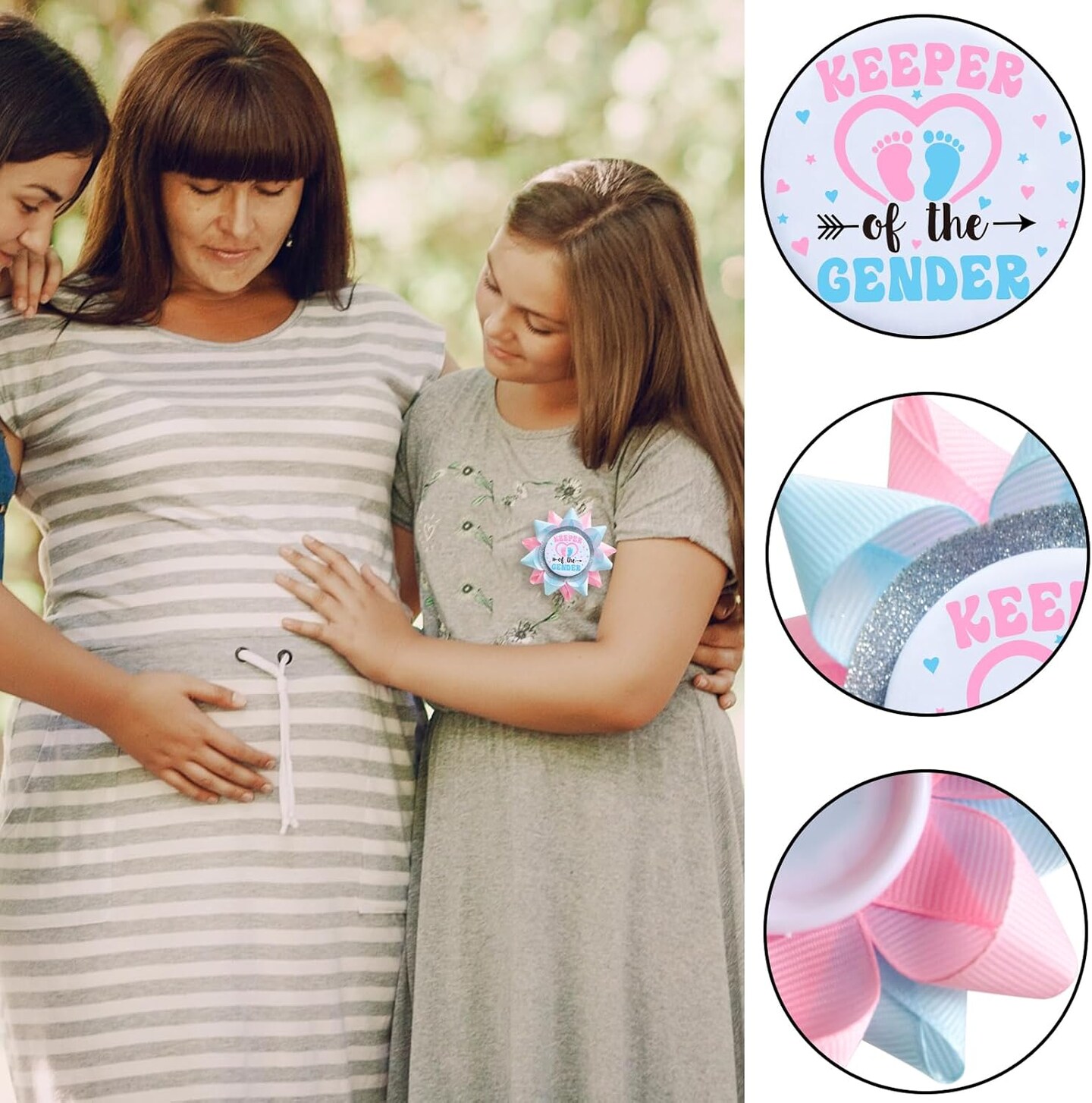Keeper of The Gender for Gender Reveal Party Decorations, Boy or Girl Gender Reveal Party Button Pins for Baby Shower parties