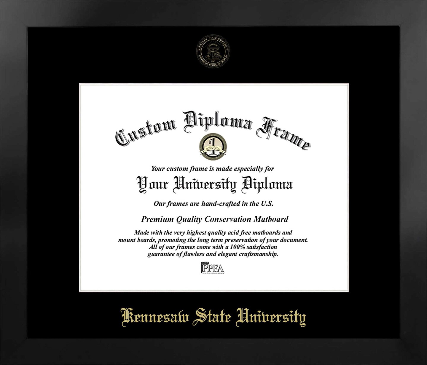 Kennesaw State University 14w x 11h Manhattan Black Single Mat Gold Embossed Diploma Frame with Bonus Campus Images Lithograph (value savings at $59)