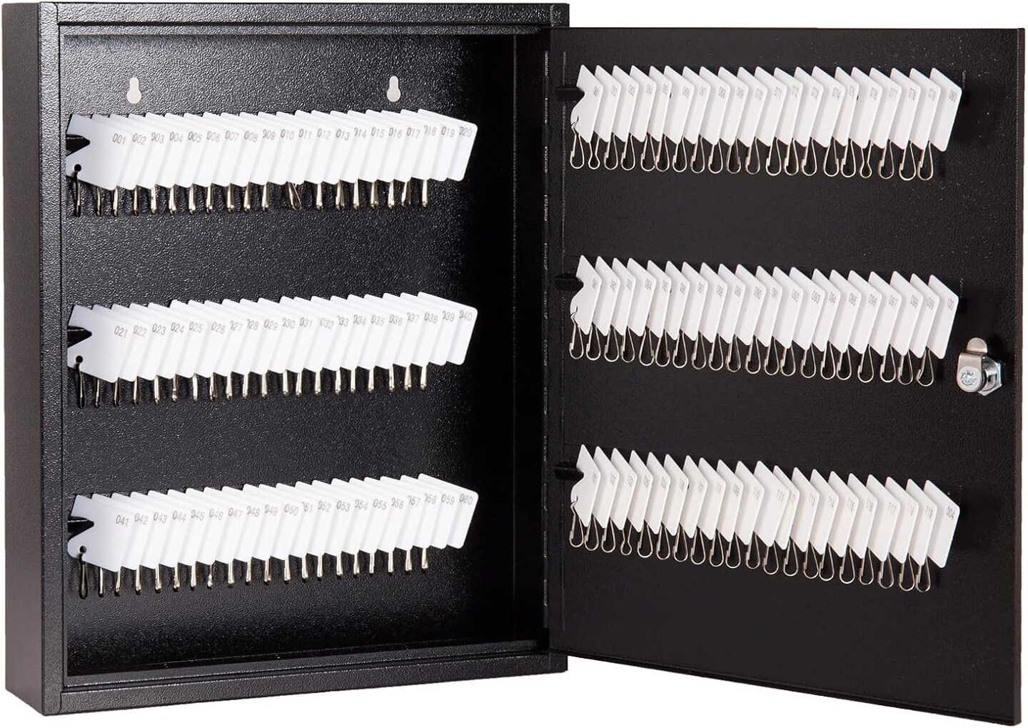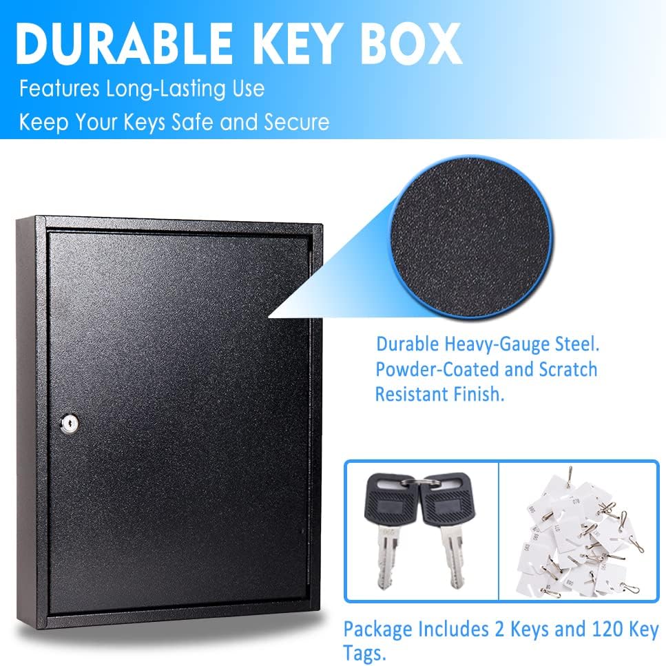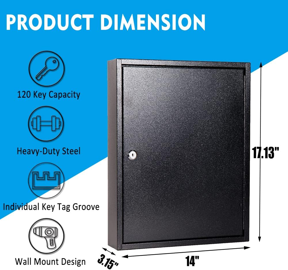 Key Box Wall Mount 120 Position Metal Valet Key Cabinet Lock Box with Key Tags, Key Holder Lockbox Key Organizer Safe Storage Locker Box, Black, 14" x 3.15" x 17.13"
