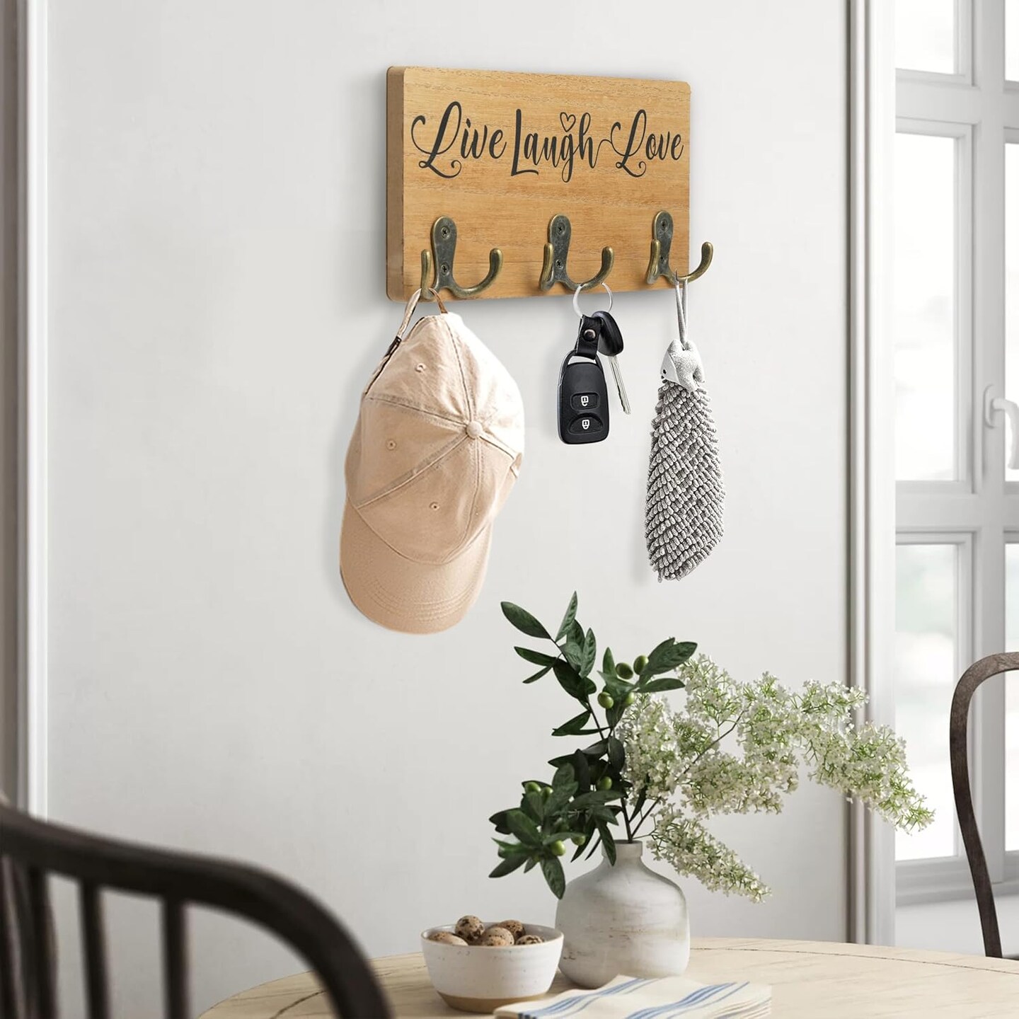 Key Holder for Wall Decorative with 3 Hooks, Wall Mounted Farmhouse Keys Hanger Organizer, Wood Rustic Hanging Key Hooks for Entryway Home Decor