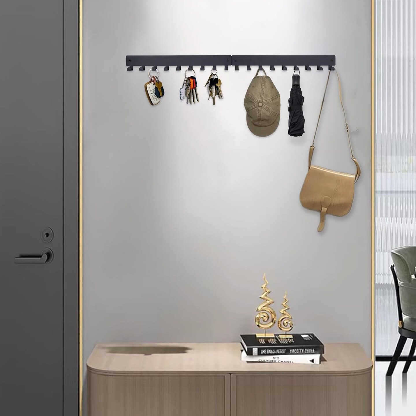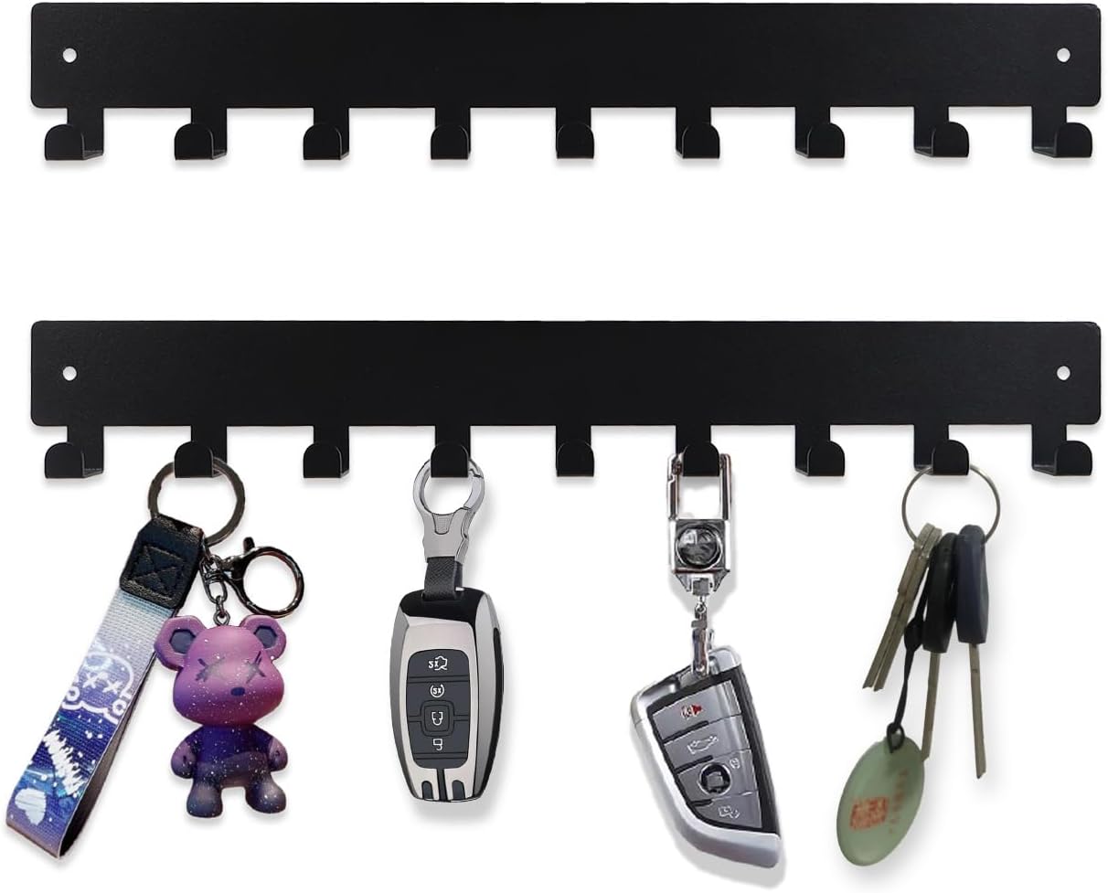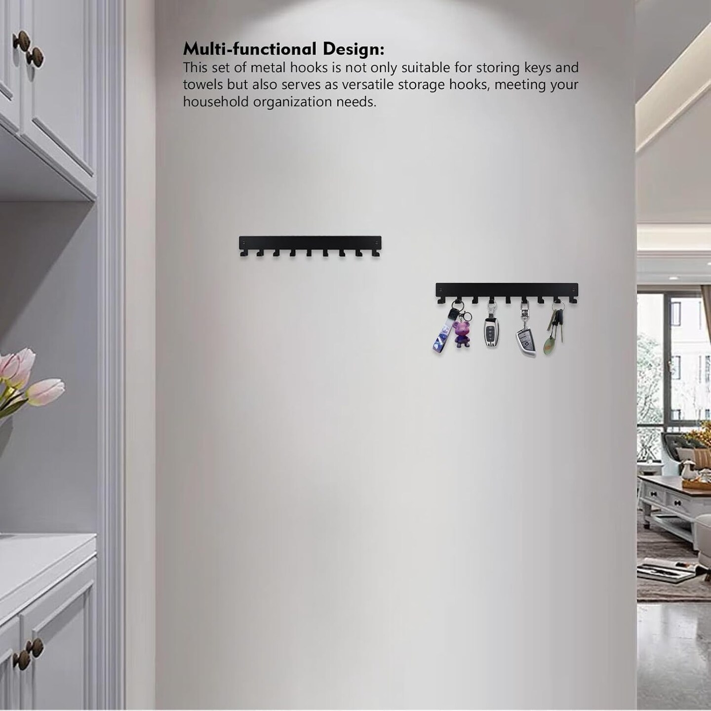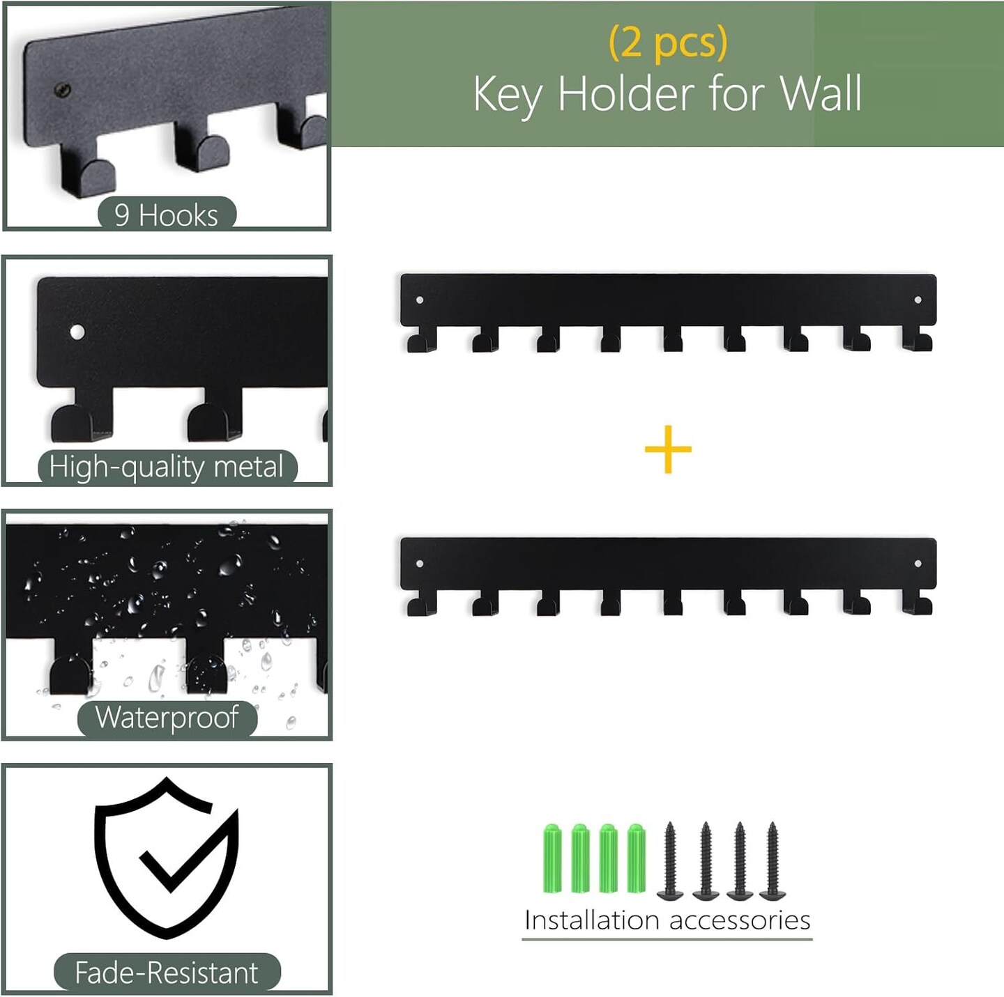 Key Holder for Wall | Metal Key Holder Hooks Organizer Rack | Metal Key Organizer Wall Decorative with 7 Hooks for Entryway, Front Door, Hallway, Kitchen, Office (12 Inches, 2-Pack 9 Hooks)