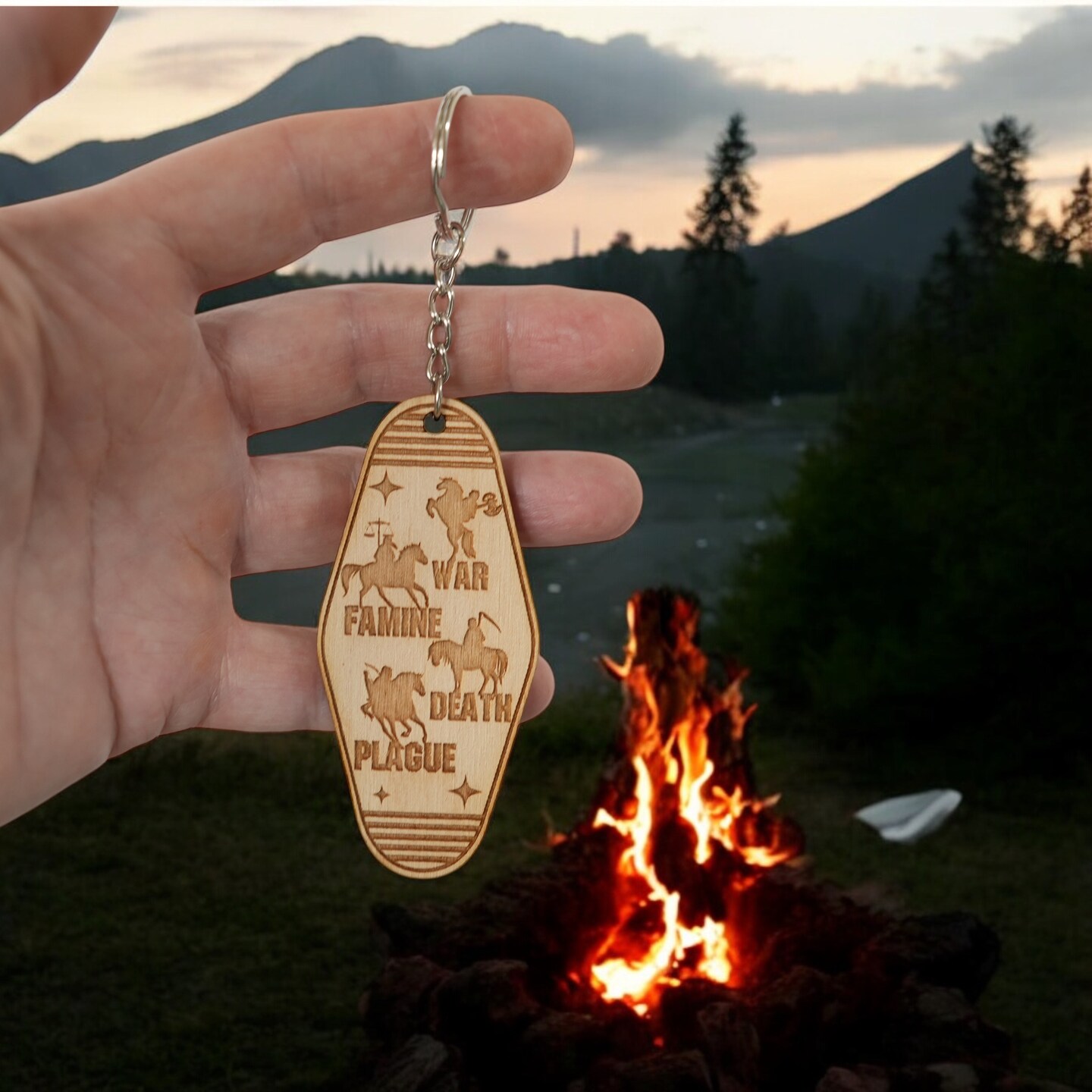 Keychain - 4 Horsemen of the Apocalypse - Birch wood
