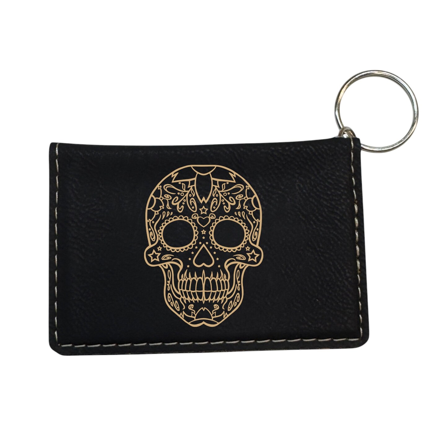 Keychain ID Holder Wallet - Sugar Skull - Leather