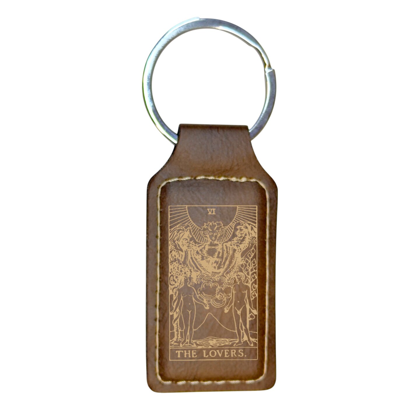 Keychain - Rectangle - The Lovers Tarot Card - Leather