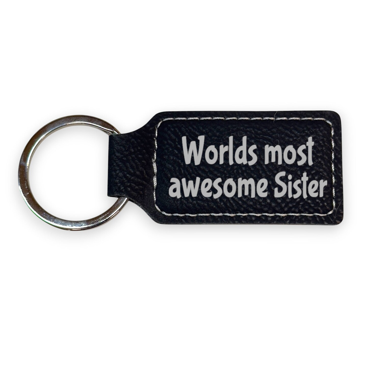 Keychain - Rectangle - Worlds Most awesome Sister - Leather