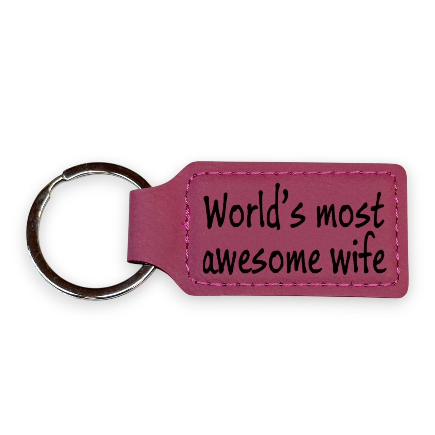 Keychain - Rectangle - Worlds most awesome wife - Leather