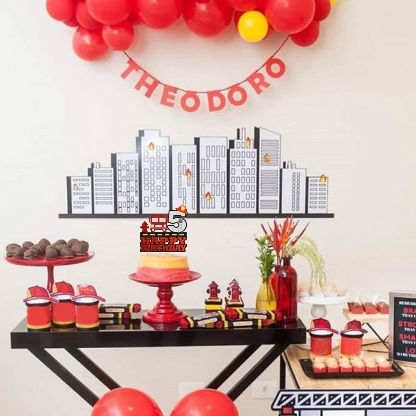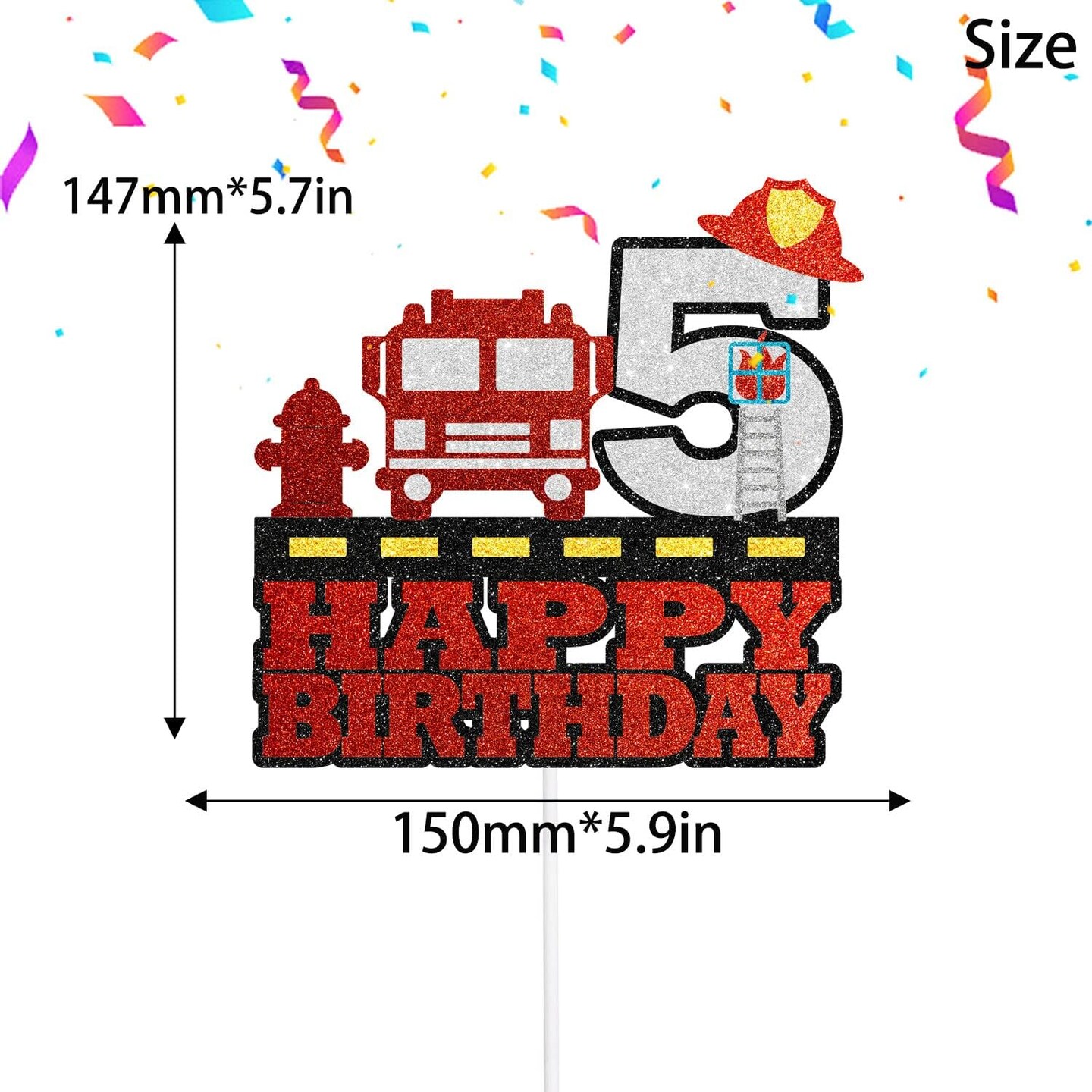 Kid's Firefighting Theme 5th Birthday Cake Topper - Fire Themed Party Fire Truck Ladder Fire Hydrant Fire Hat Happy Birthday Decoration
