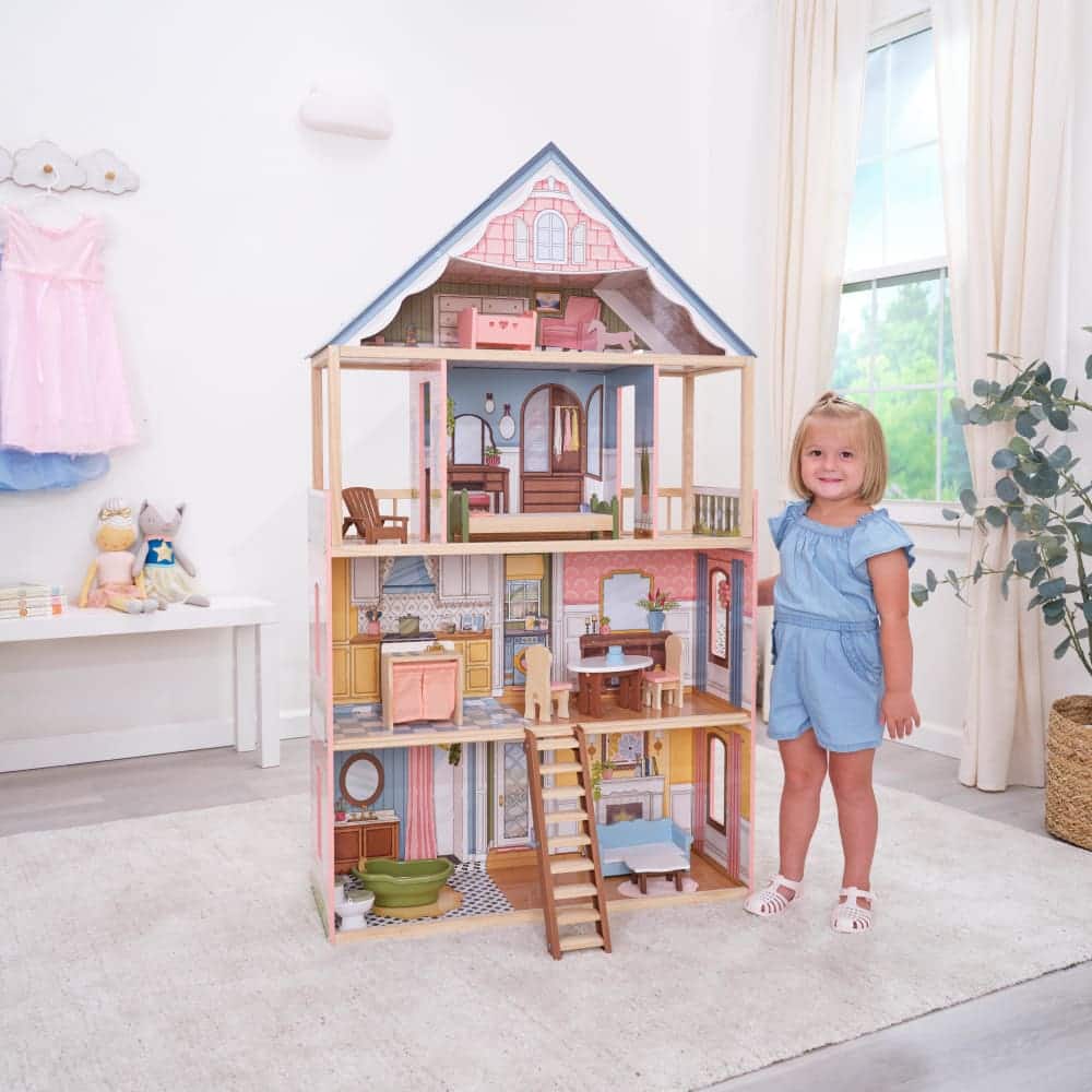 KidKraft Pink Wooden Charlotte Classic Dollhouse Set