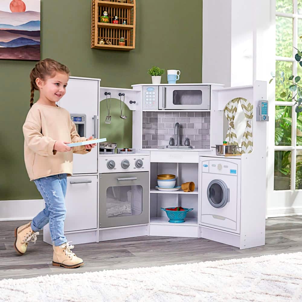 KidKraft White Ultimate Corner Play Kitchen Set with Lights & Sounds