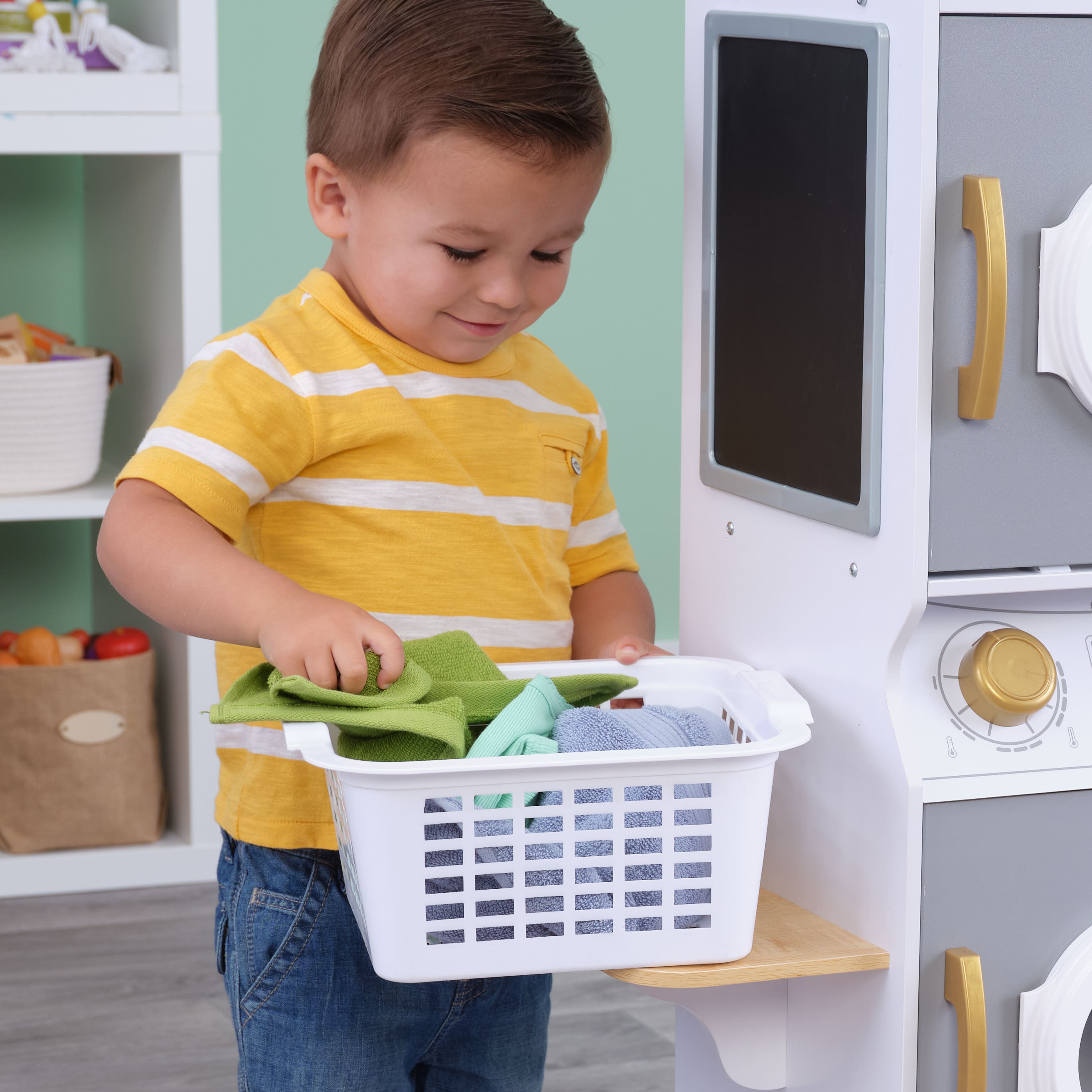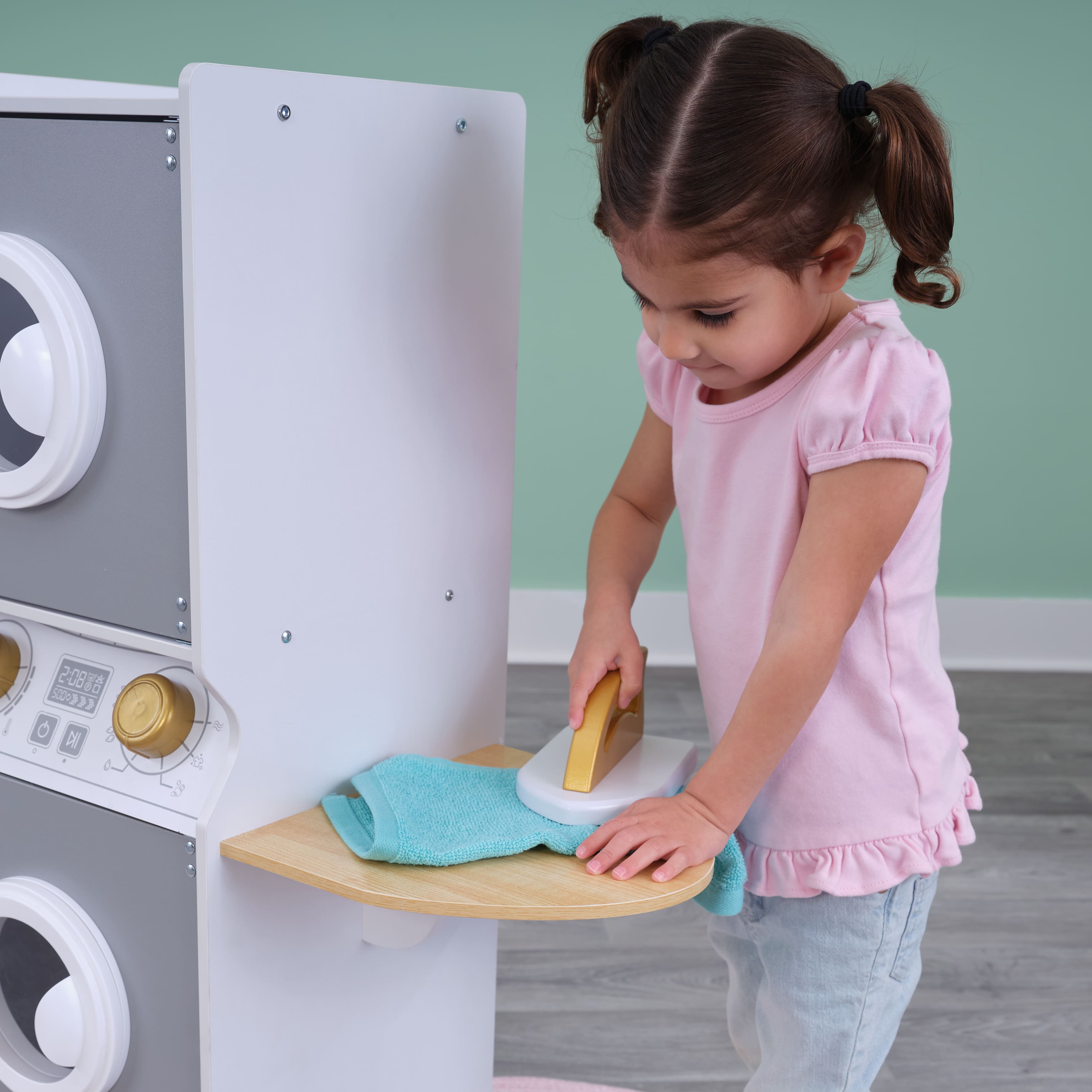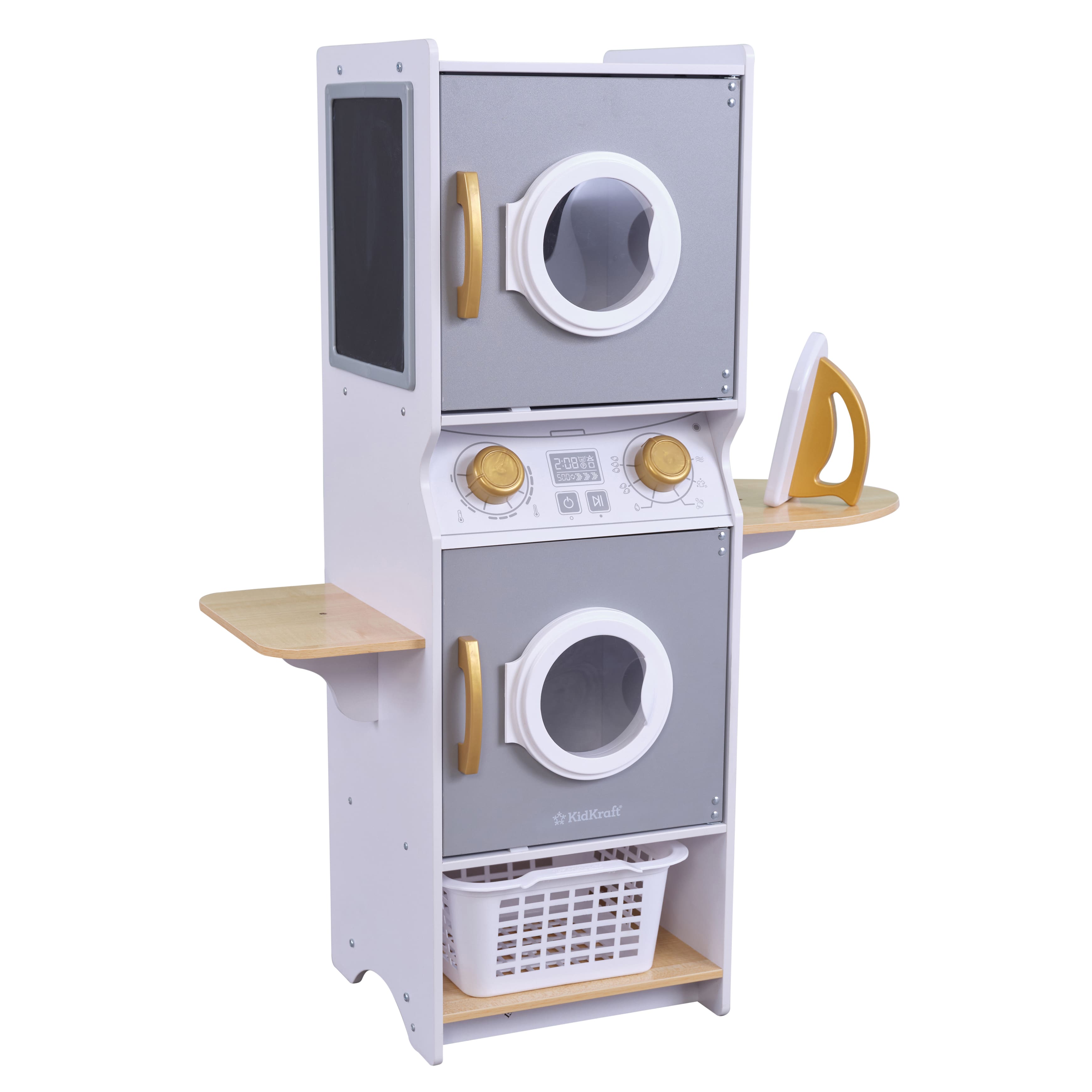 KidKraft White Wooden Laundry Play Set, Stacking Washer & Dryer with Iron & Basket