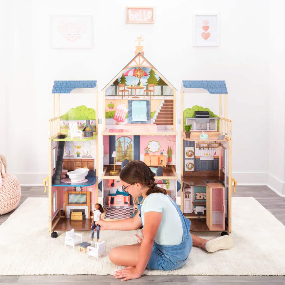 KidKraft Wooden Secret Reveal Mansion Dollhouse with Lights, Sounds & Accessories