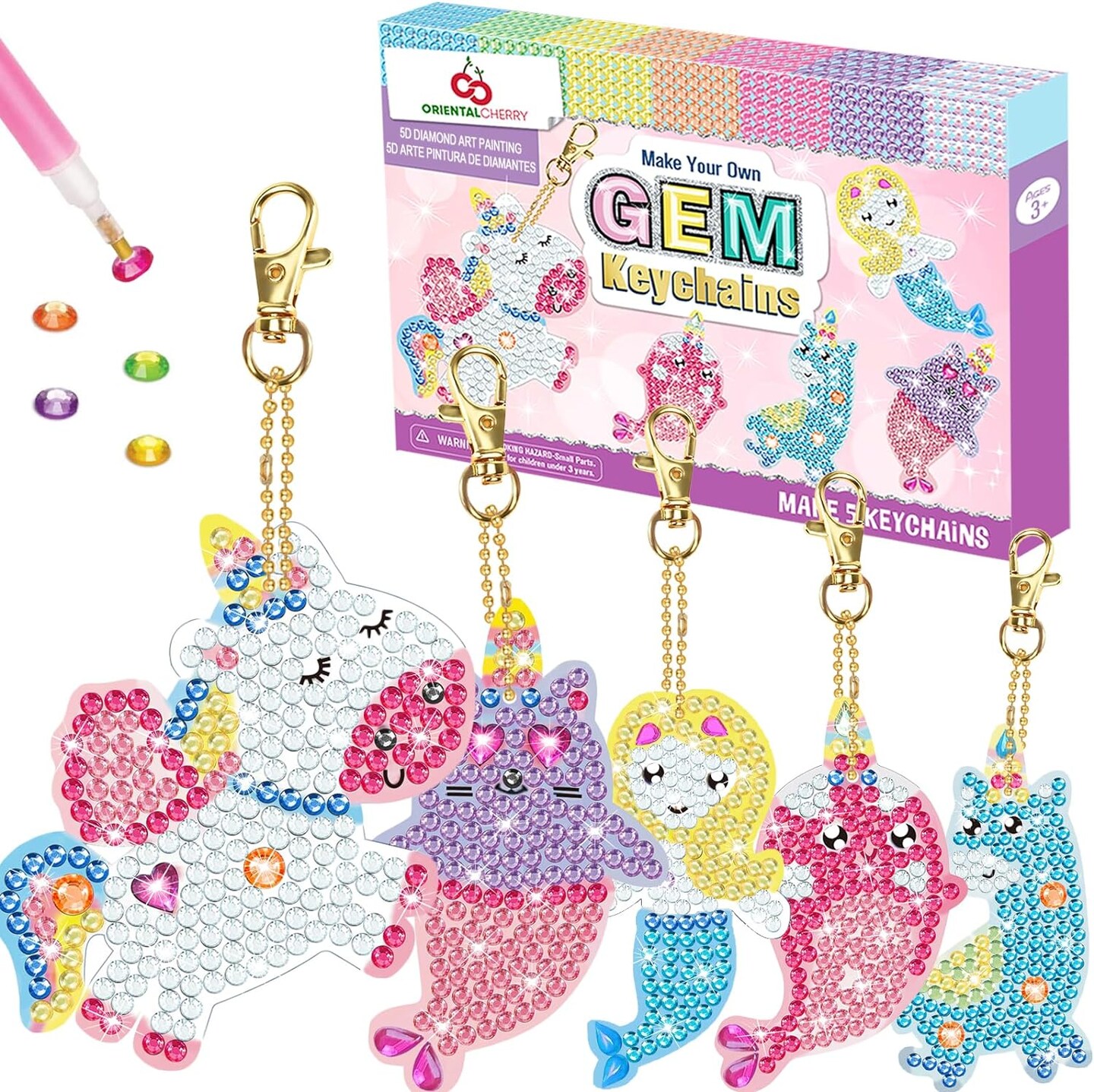 Kids' Arts & Crafts: Create Your Own GEM Keychains with Number Painting Kits for 5D Diamond Art Girls Children Ages 3–5, 4–6, 8 Playthings Christmas Gifts for Birthdays Gift Ideas