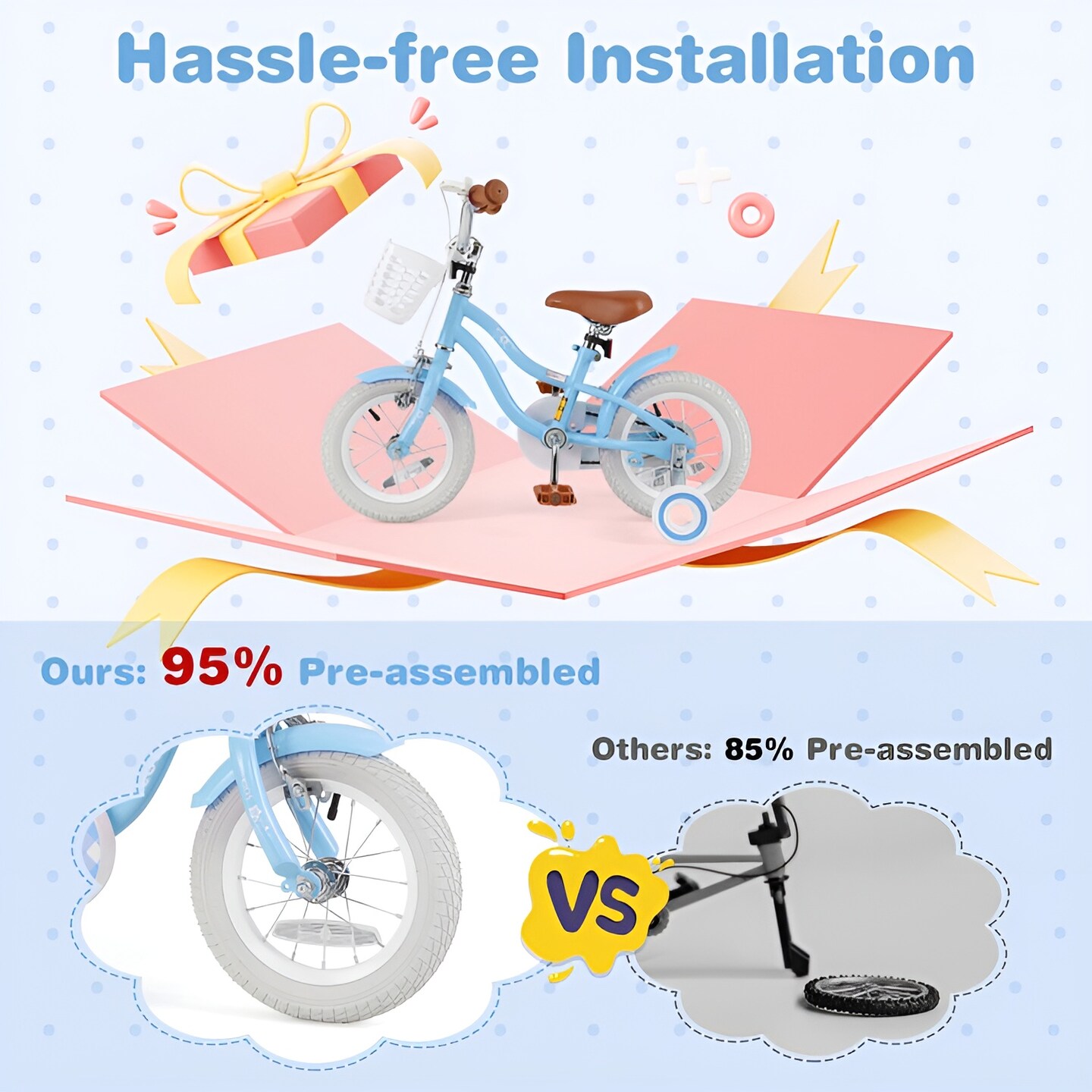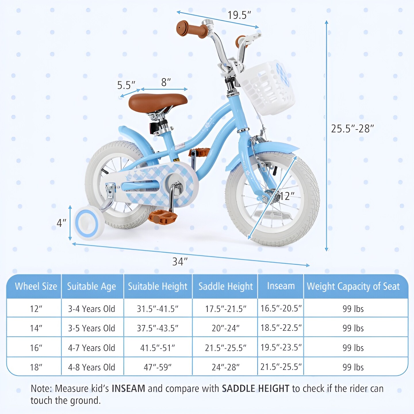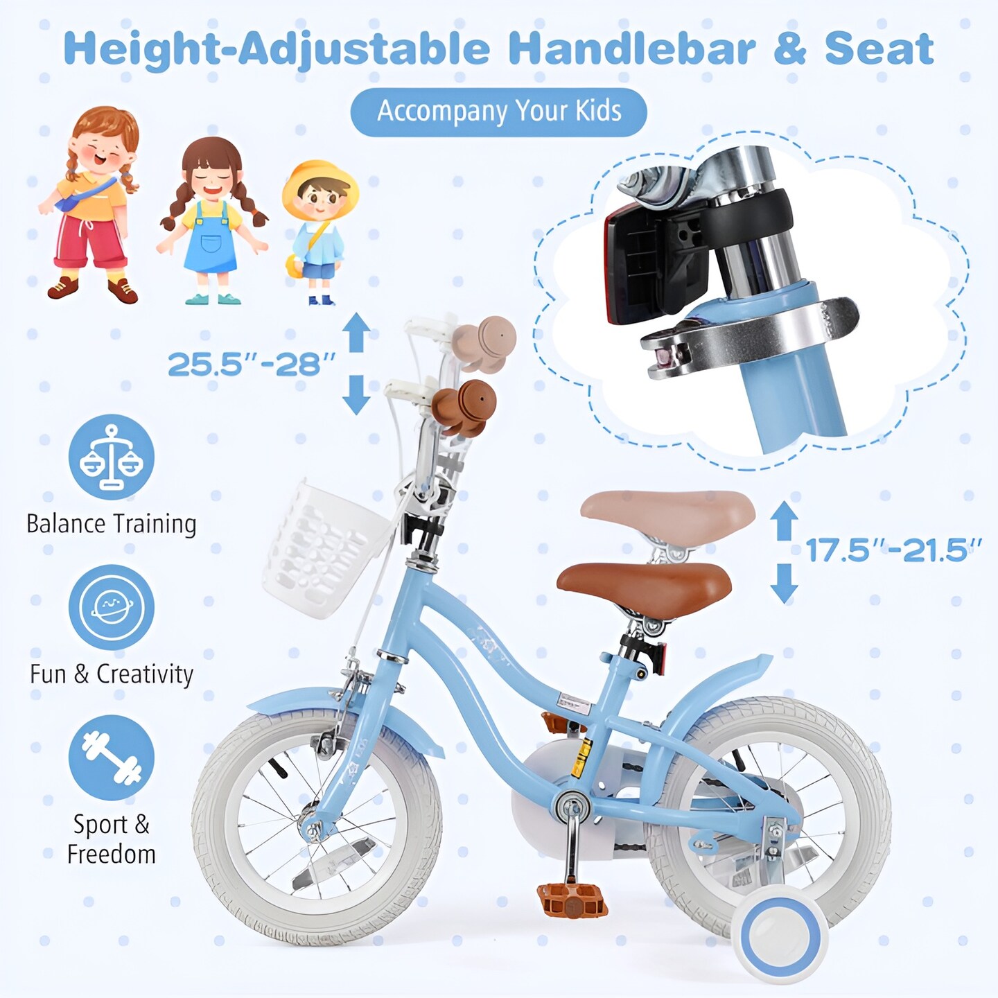 Kids Bicycle with Training Wheels Adjustable Seat and Dual Brake System