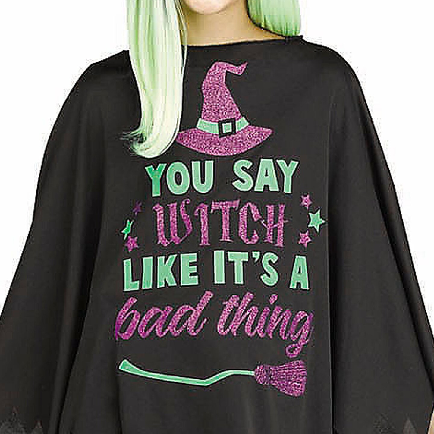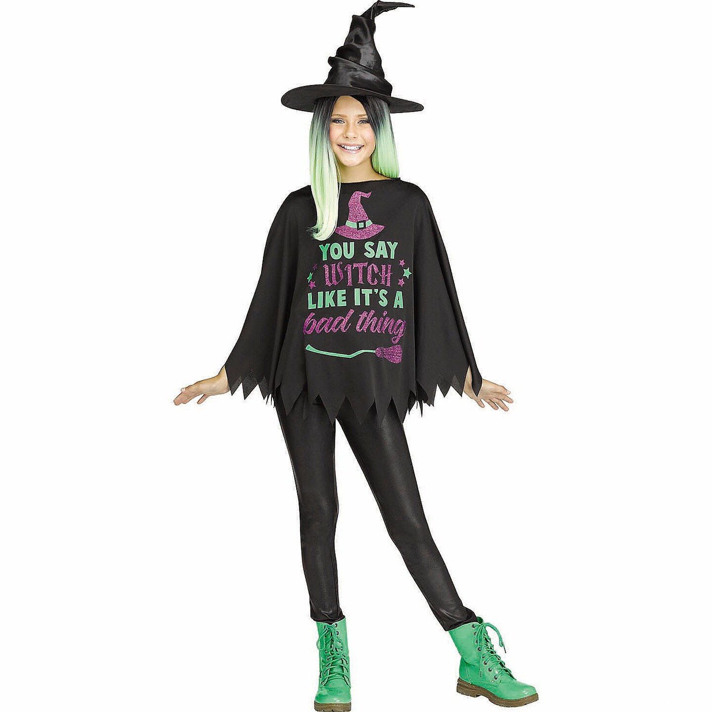 Kids Black Green Purple Witch Poncho Costume Halloween Outfit
