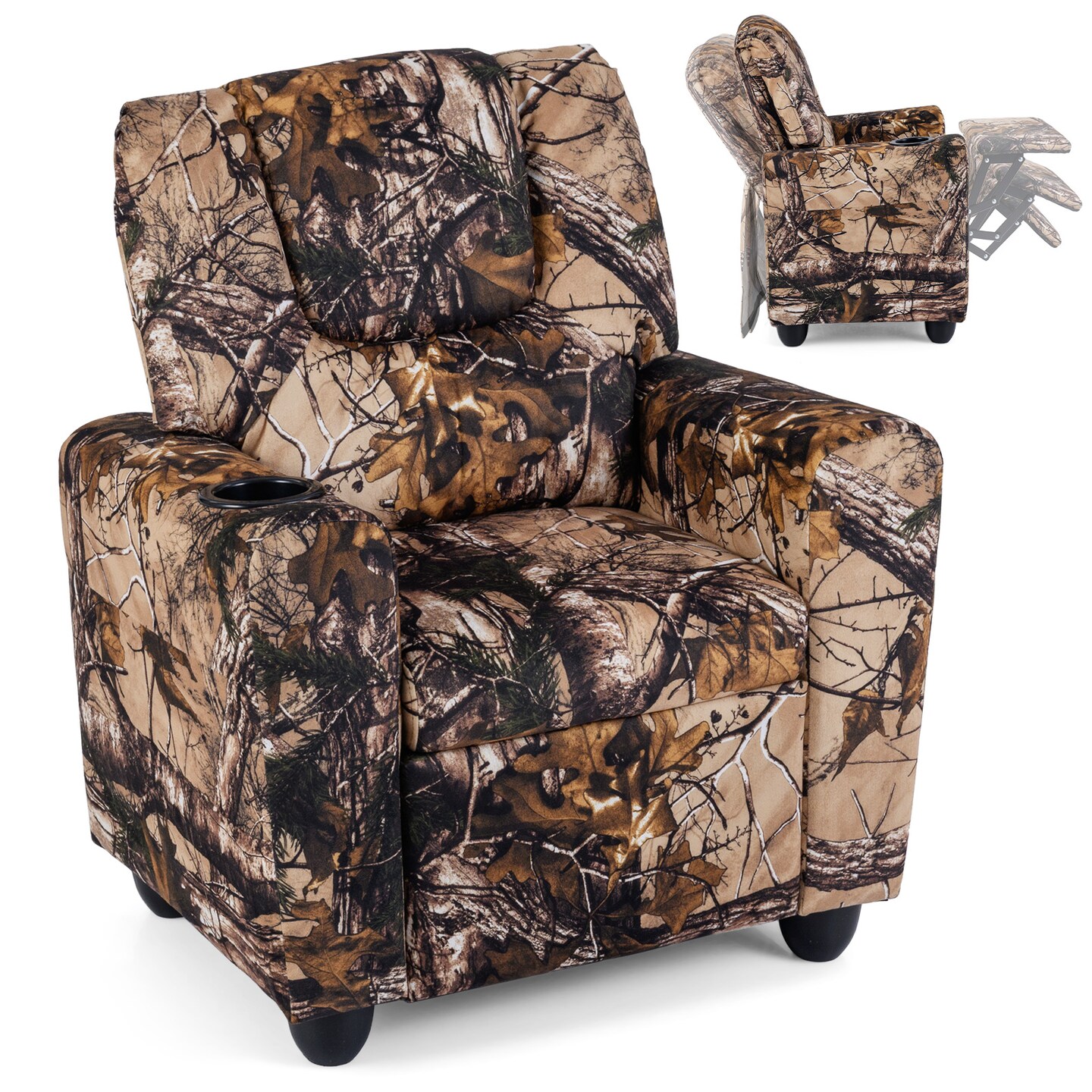 Kids Camouflage Recliner Chair with Cup Holder Adjustable 139° Lounge Armchair Soft Padded Seat