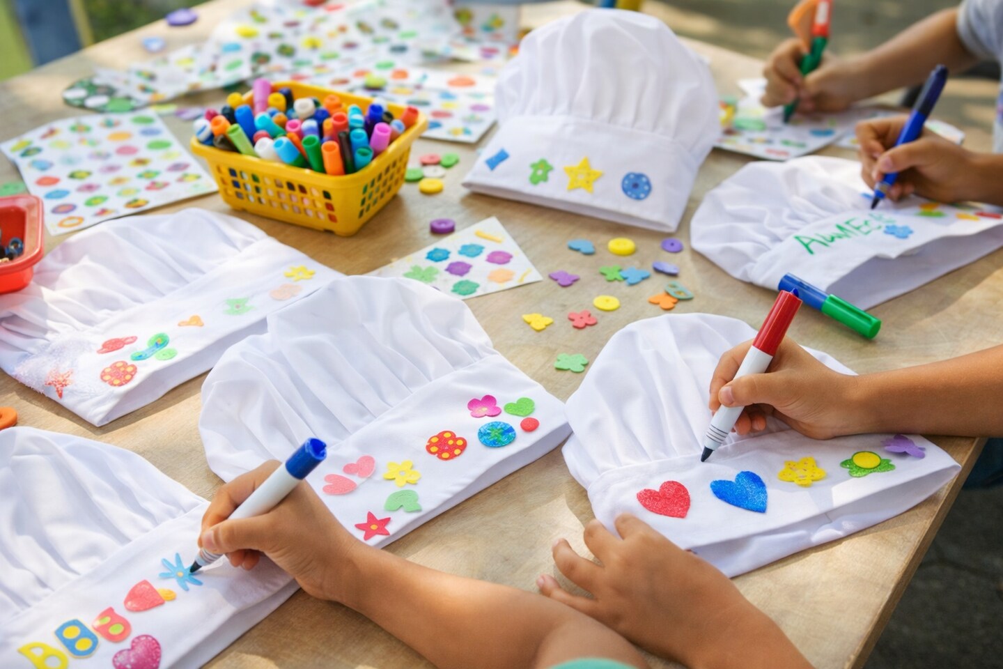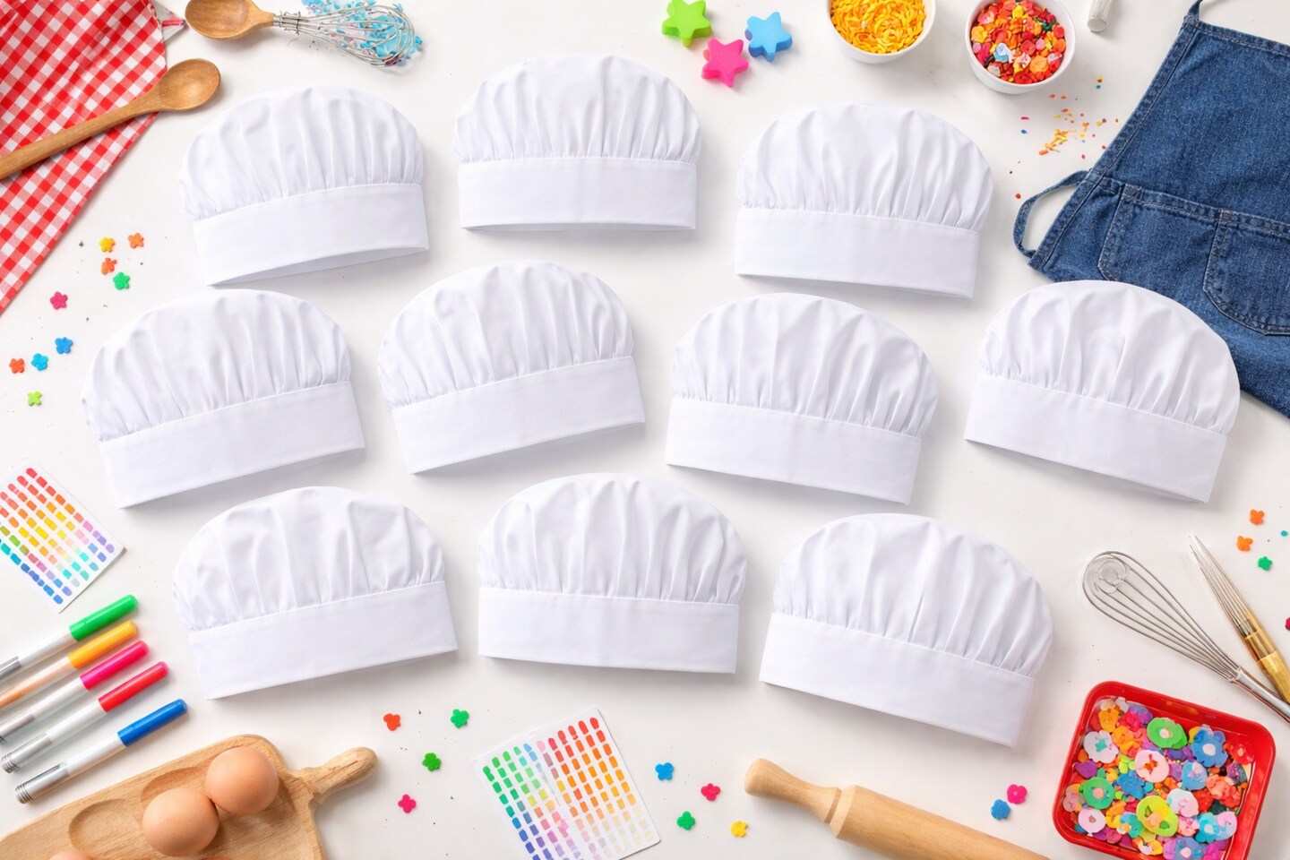 Kids Chef Hats 8" Tall – White Fabric Cooking Hats, Classroom & Camp Craft Supplies, 12 Pack