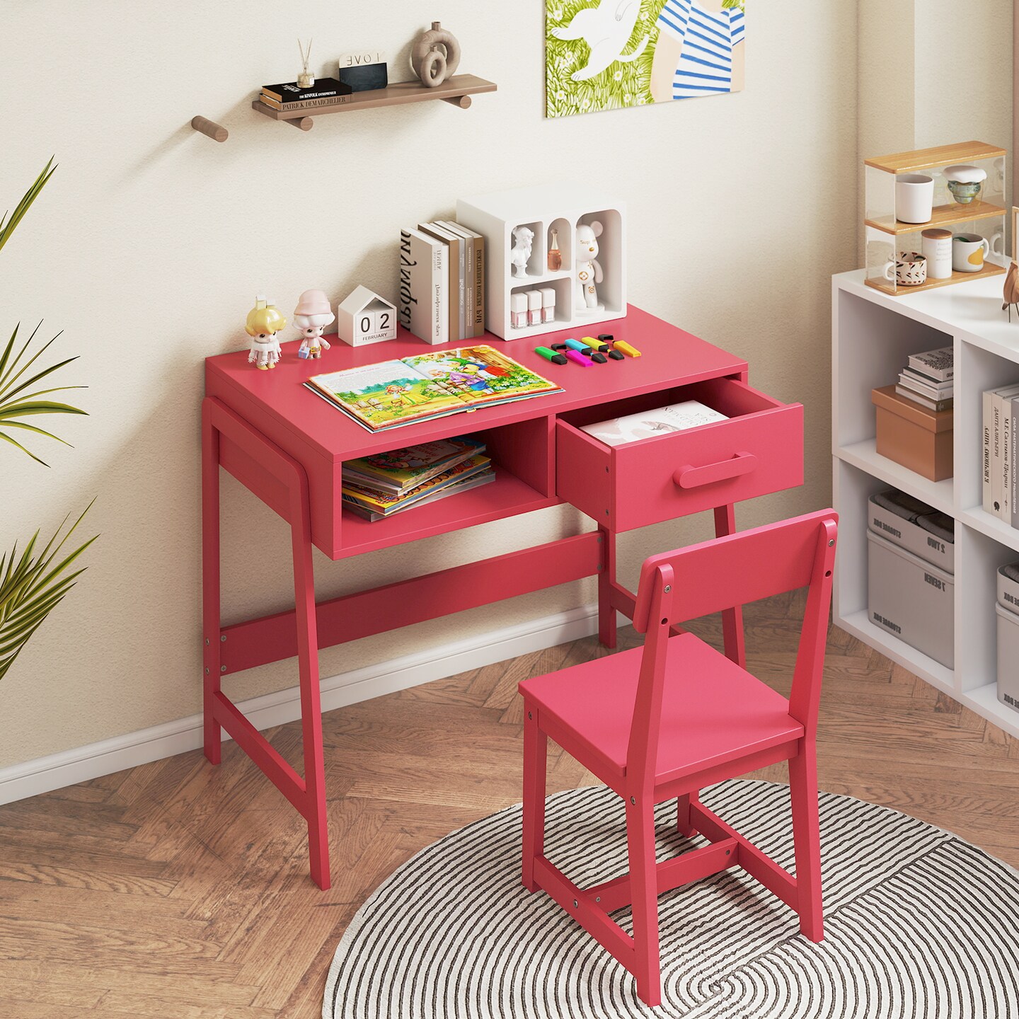 Kids Desk Set with Hutch, Drawer, and Ergonomic Chair
