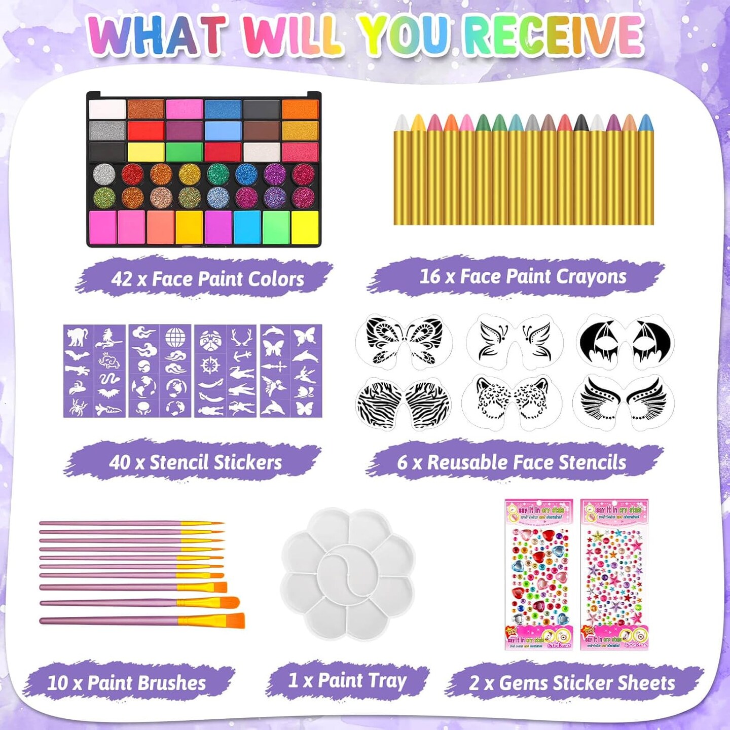 Kids Face Painting Kit 42 Colors (classic, glitter, fluorescent)