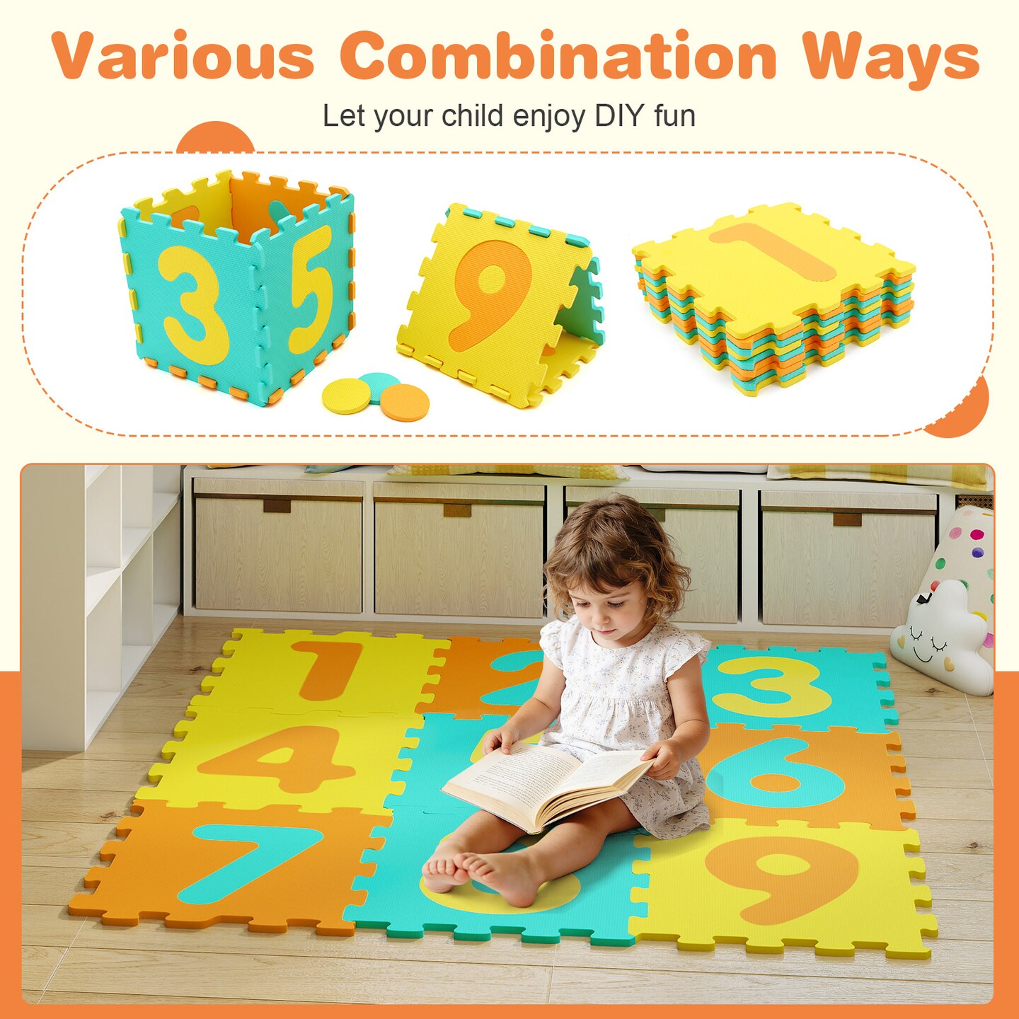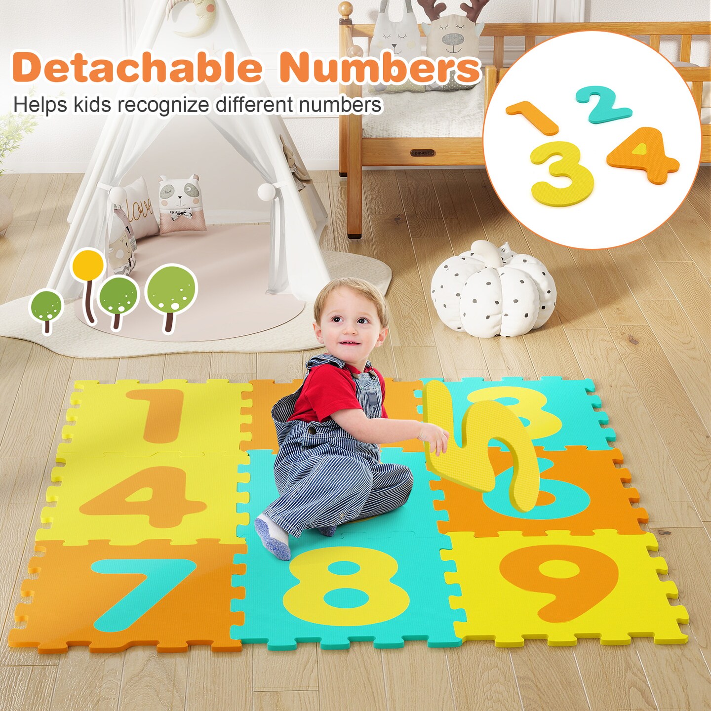 Kids Foam Hopscotch Mat with 9 Interlocking Tiles & 3 Marker Discs, Ages 10+ Months