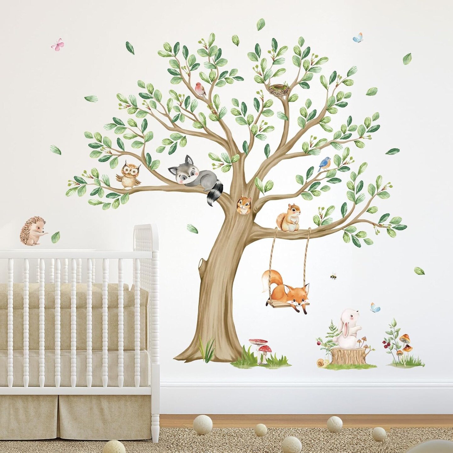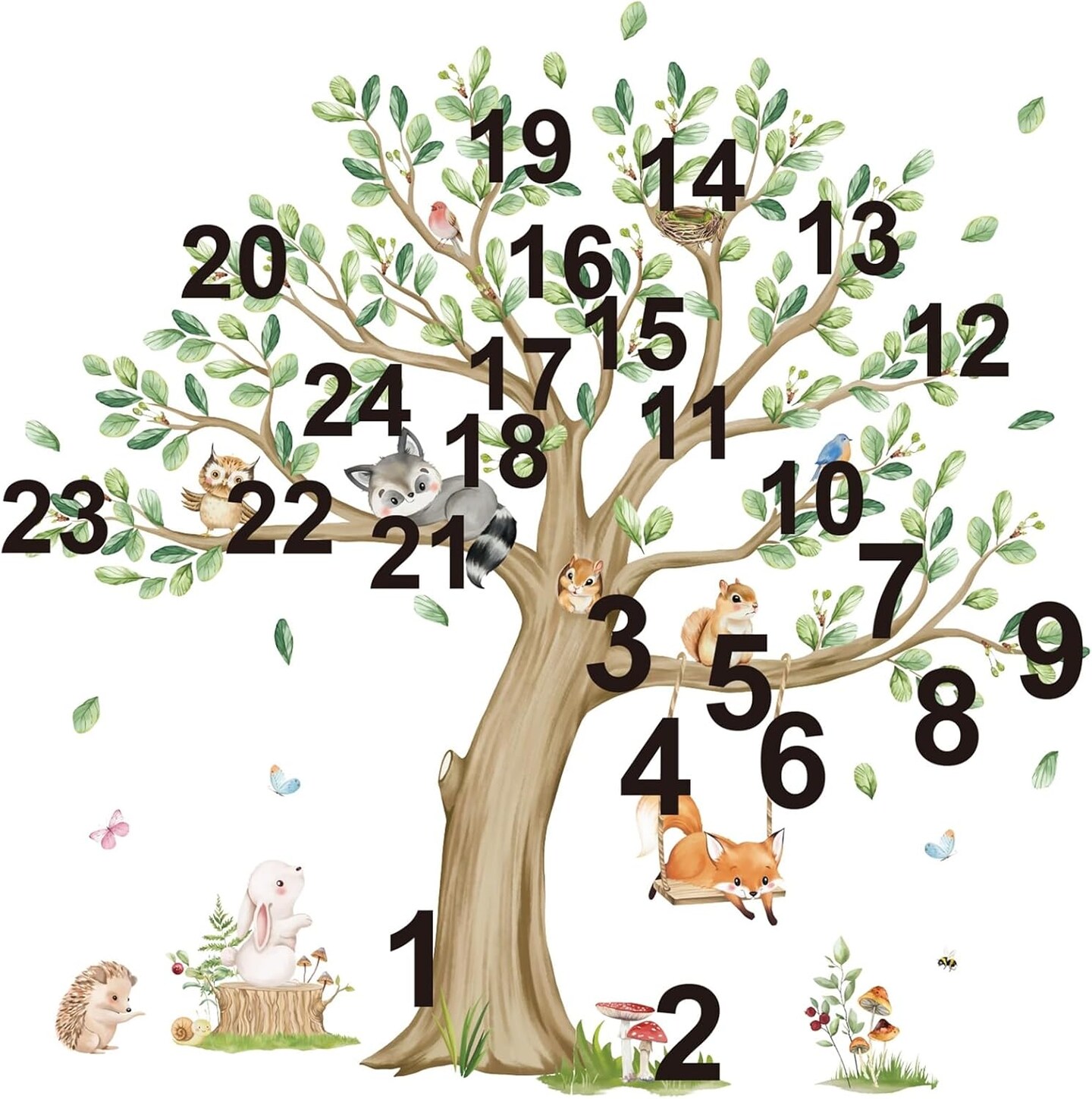Kids Large Tree Wall Stickers Animal Tree Fox Owl Peel (Multi)