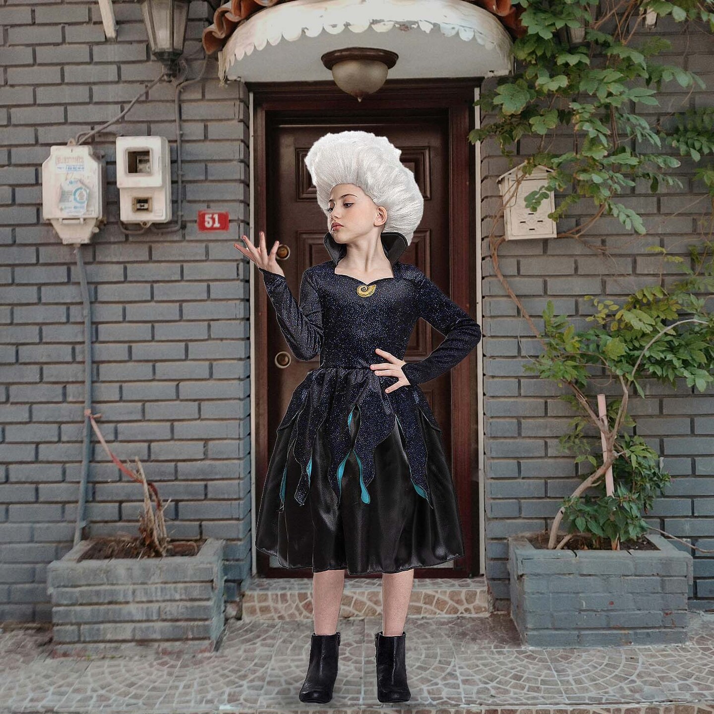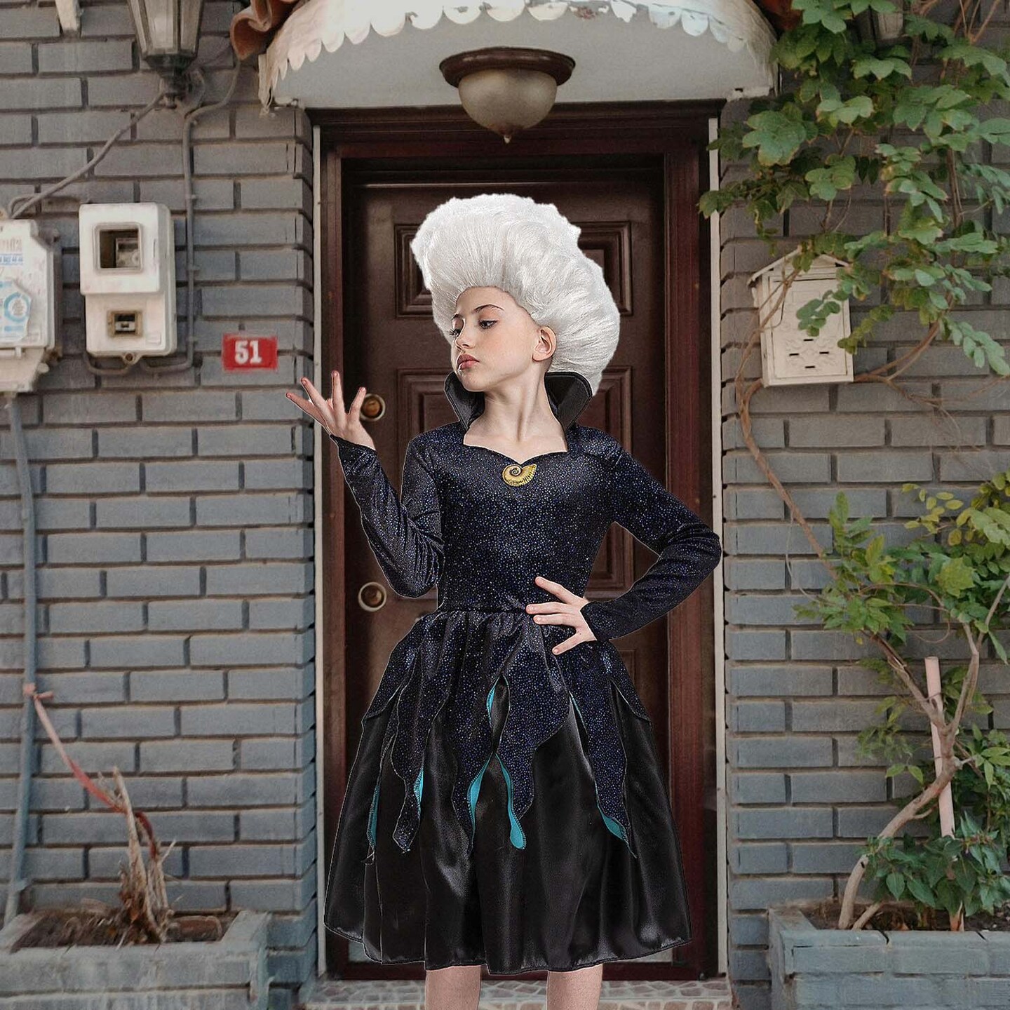 Kids Little Mermaid Ursula Costume Dress with Glitter Bodice