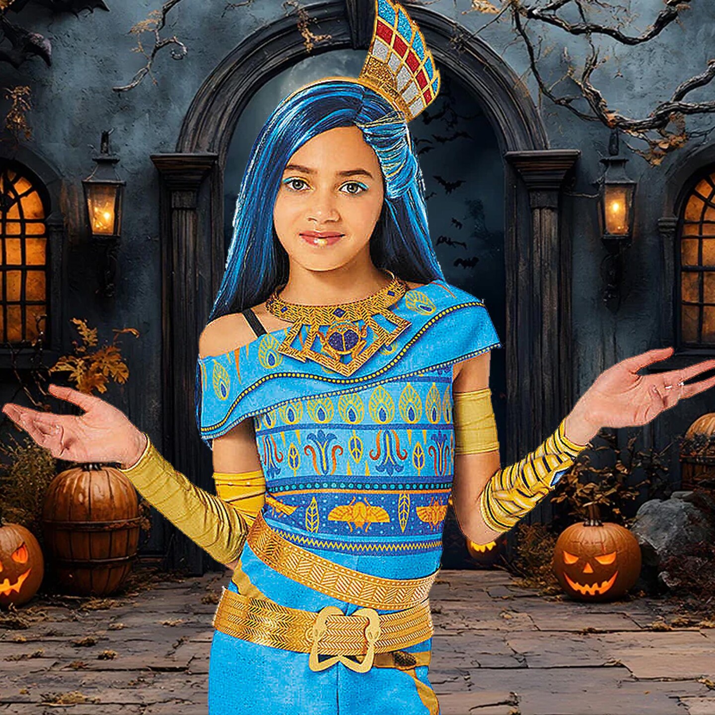 Kids Monster High Blue Gold Cleo De Nile Costume Jumpsuit Belt Headpiece Youth