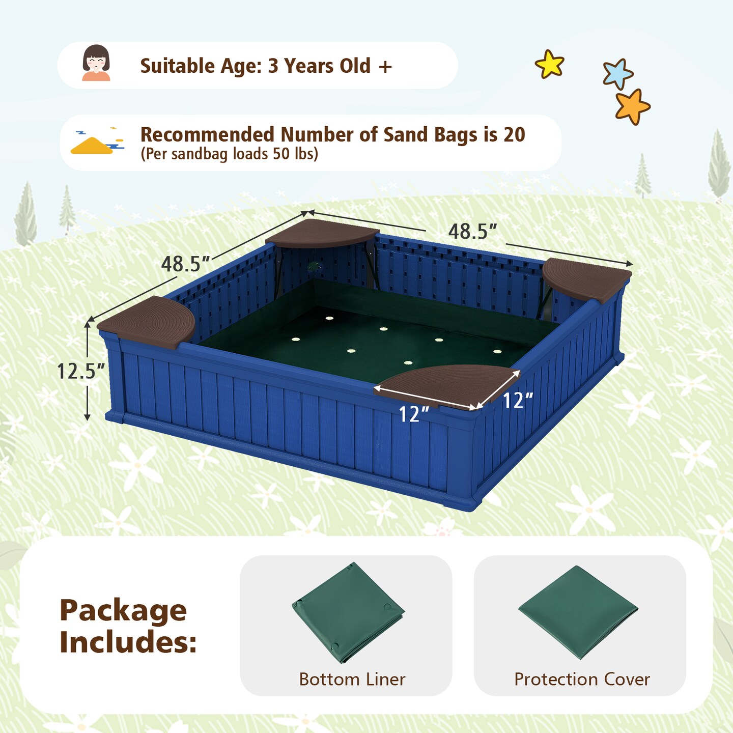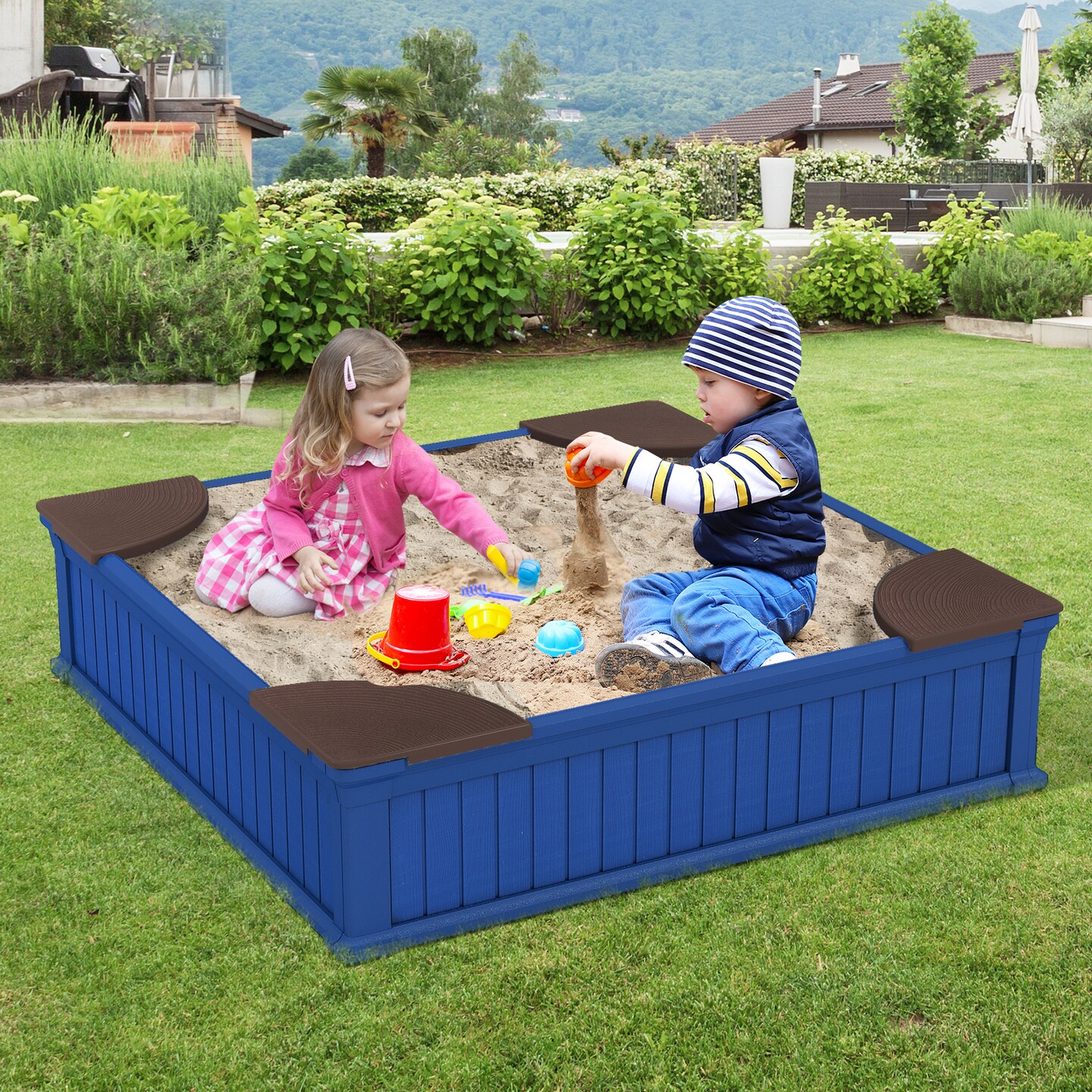 Kids Outdoor Sandbox with Oxford Cover and 4 Corner Seats