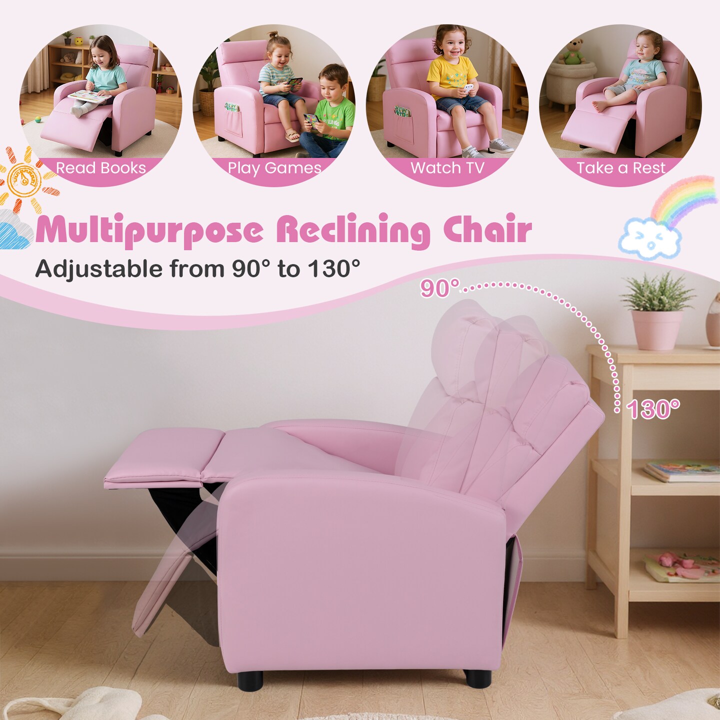 Kids Recliner Chair Sofa with Adjustable Backrest and Footrest