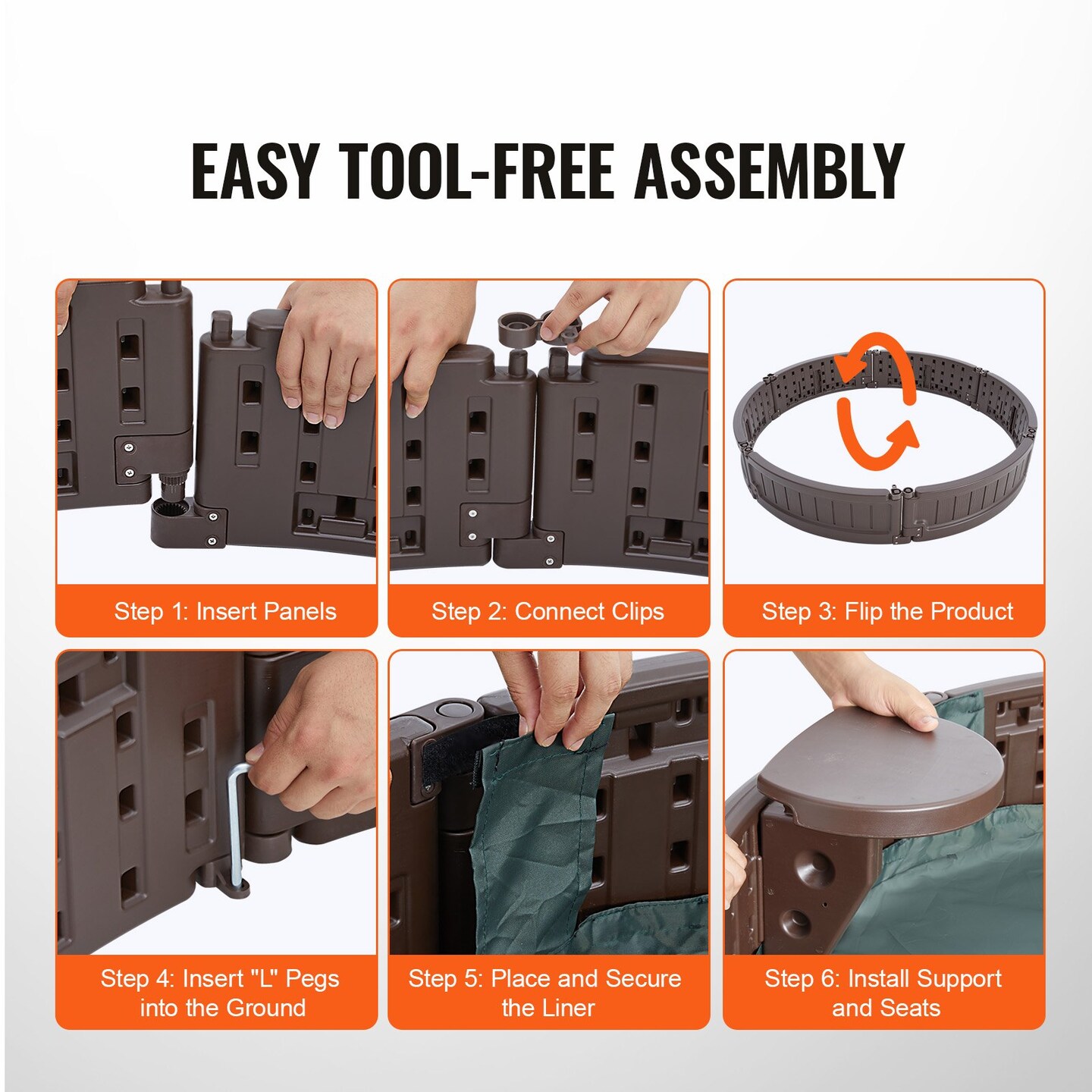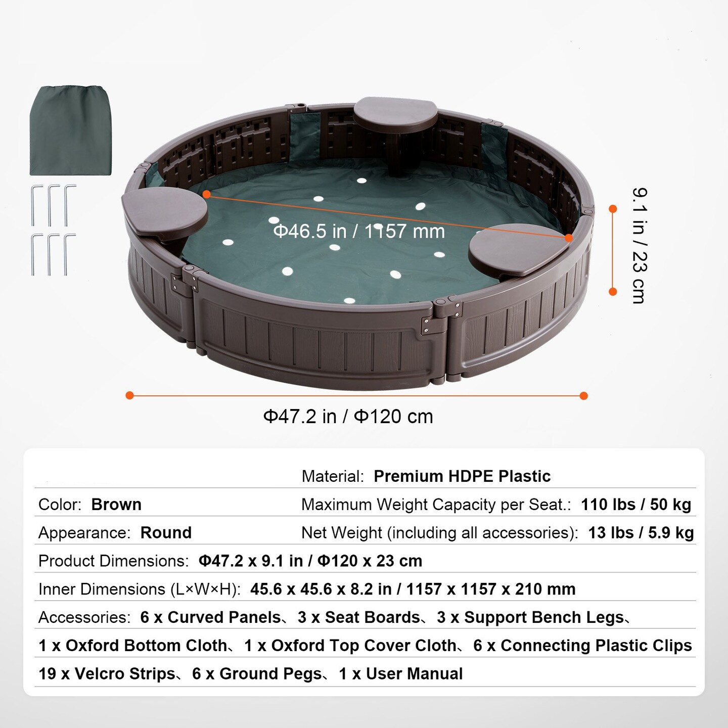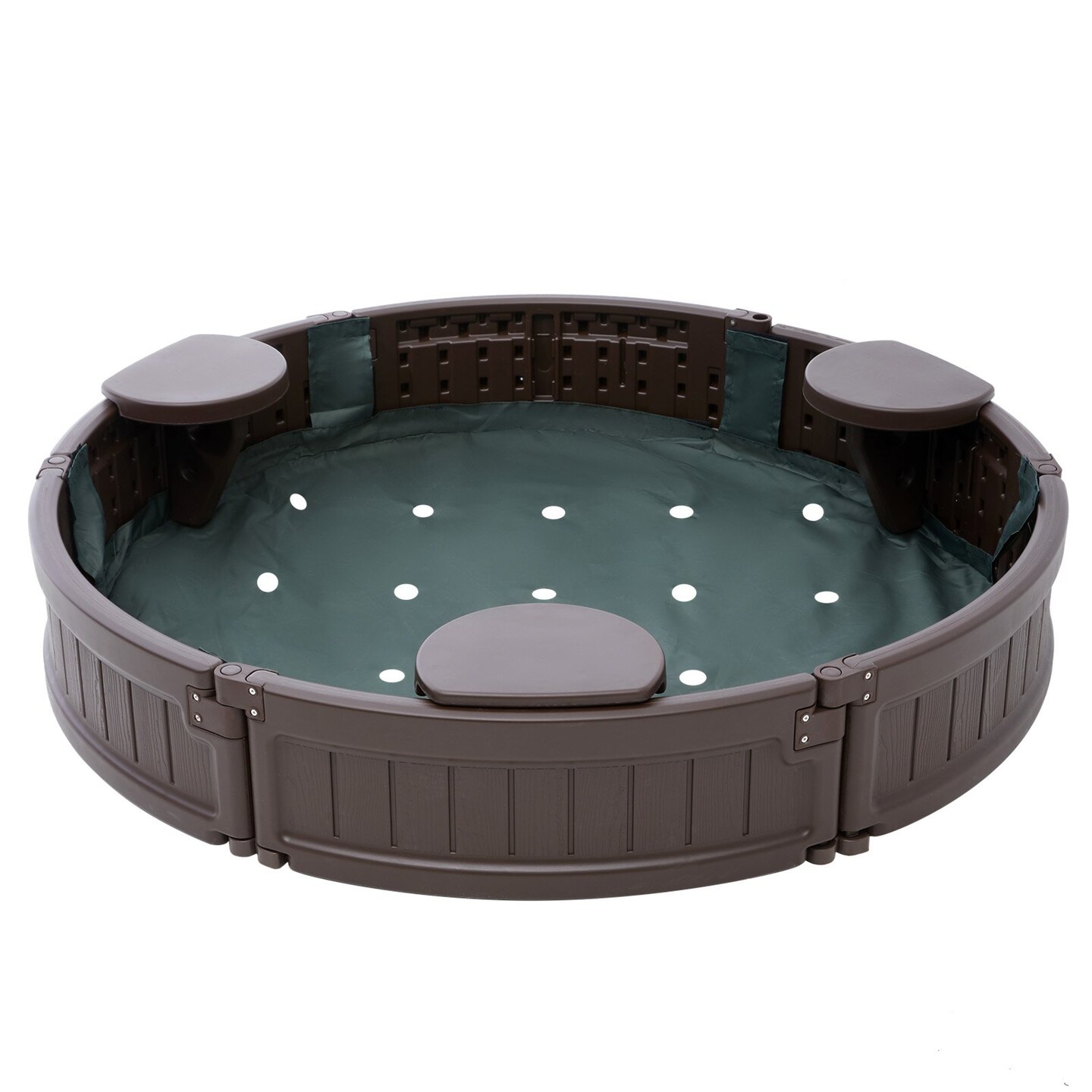 Kids Round Sandbox with Cover, 47.2" Outdoor Sand Pit with Seats and Bottom Liner