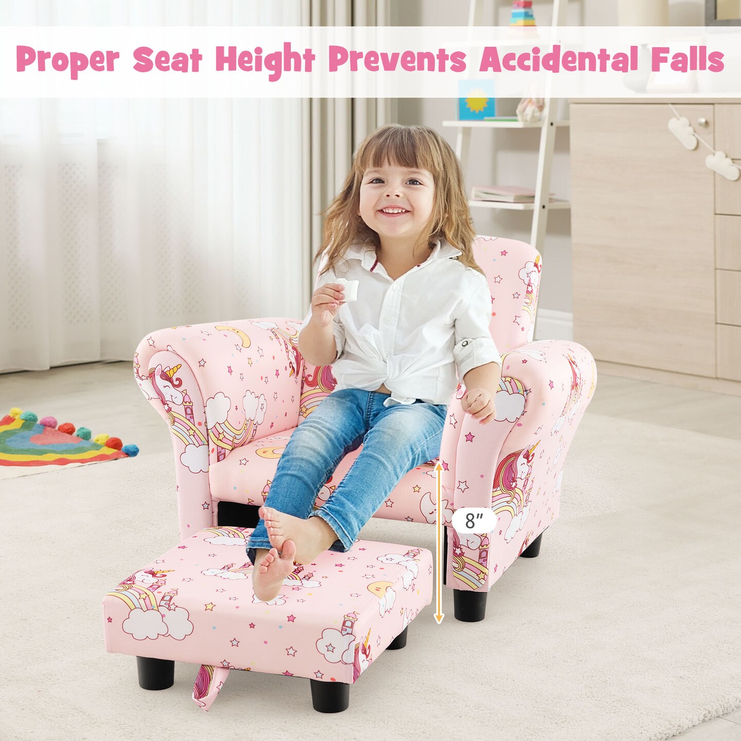 Kids Single Sofa With Cute Patterns Ergonomic Backrest And Armrests