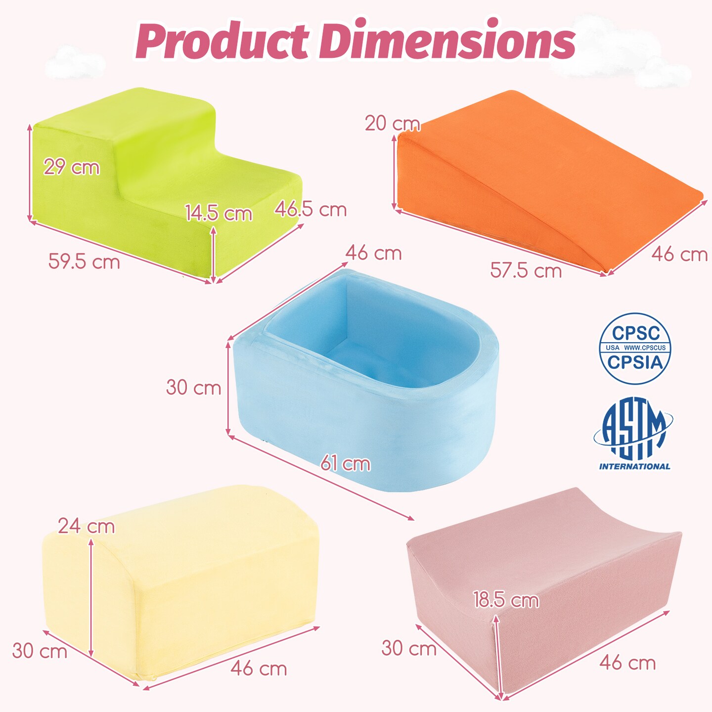 Kids Soft Play Climbing Blocks Set 5 Piece with Ball Pit