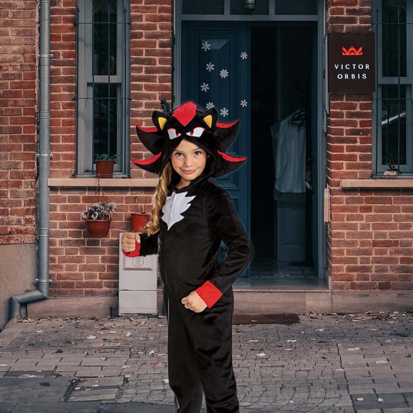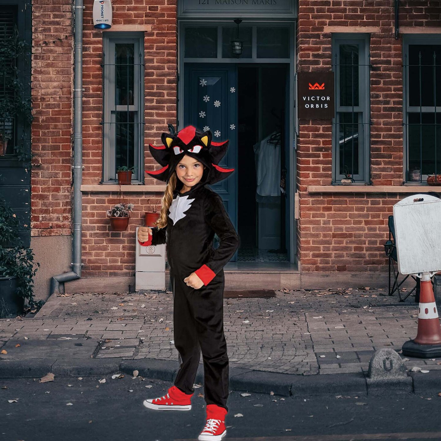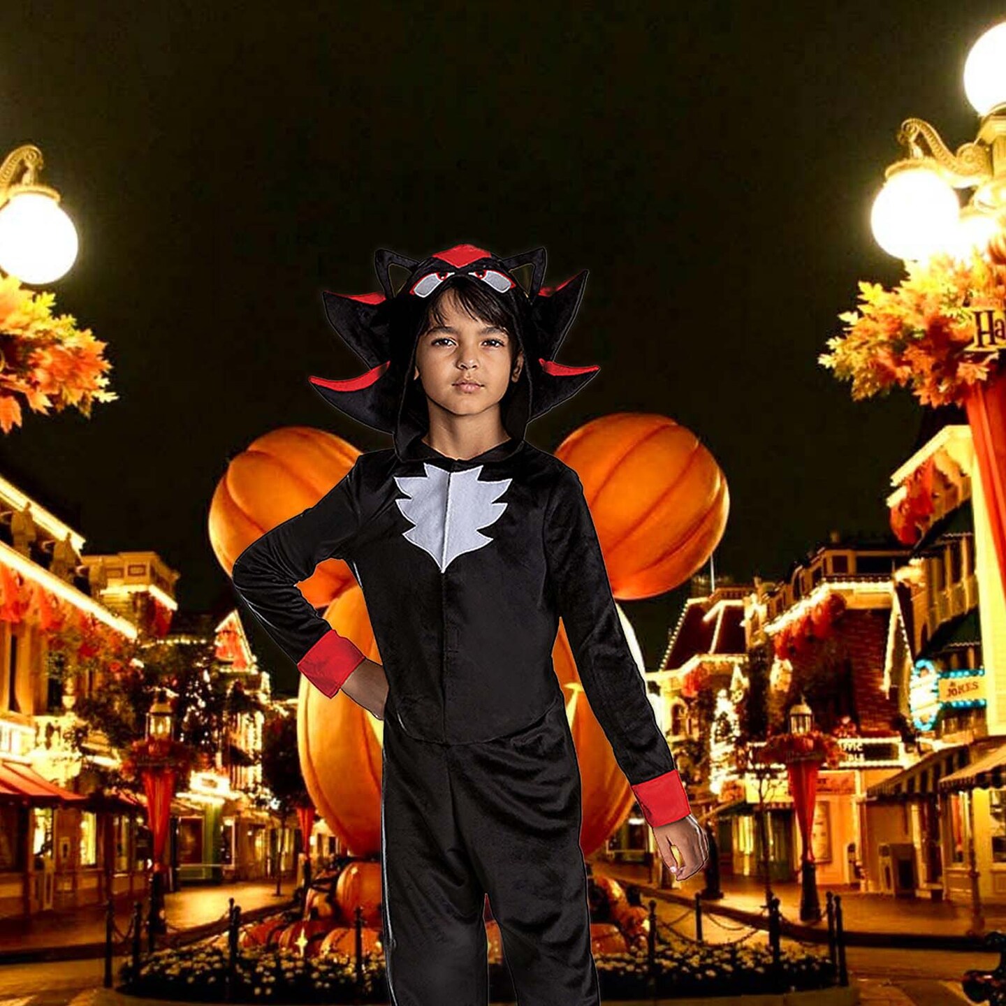 Kids Sonic Shadow Classic Hooded Jumpsuit Costume, Perfect for Halloween Party