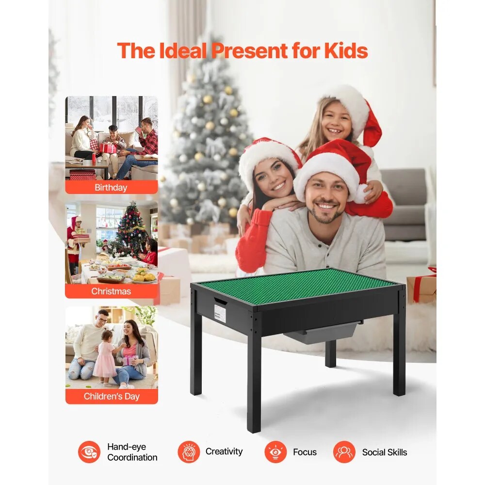 Kids Wooden Activity Table Double-Sided Building Blocks Table with 2 Storage Bins