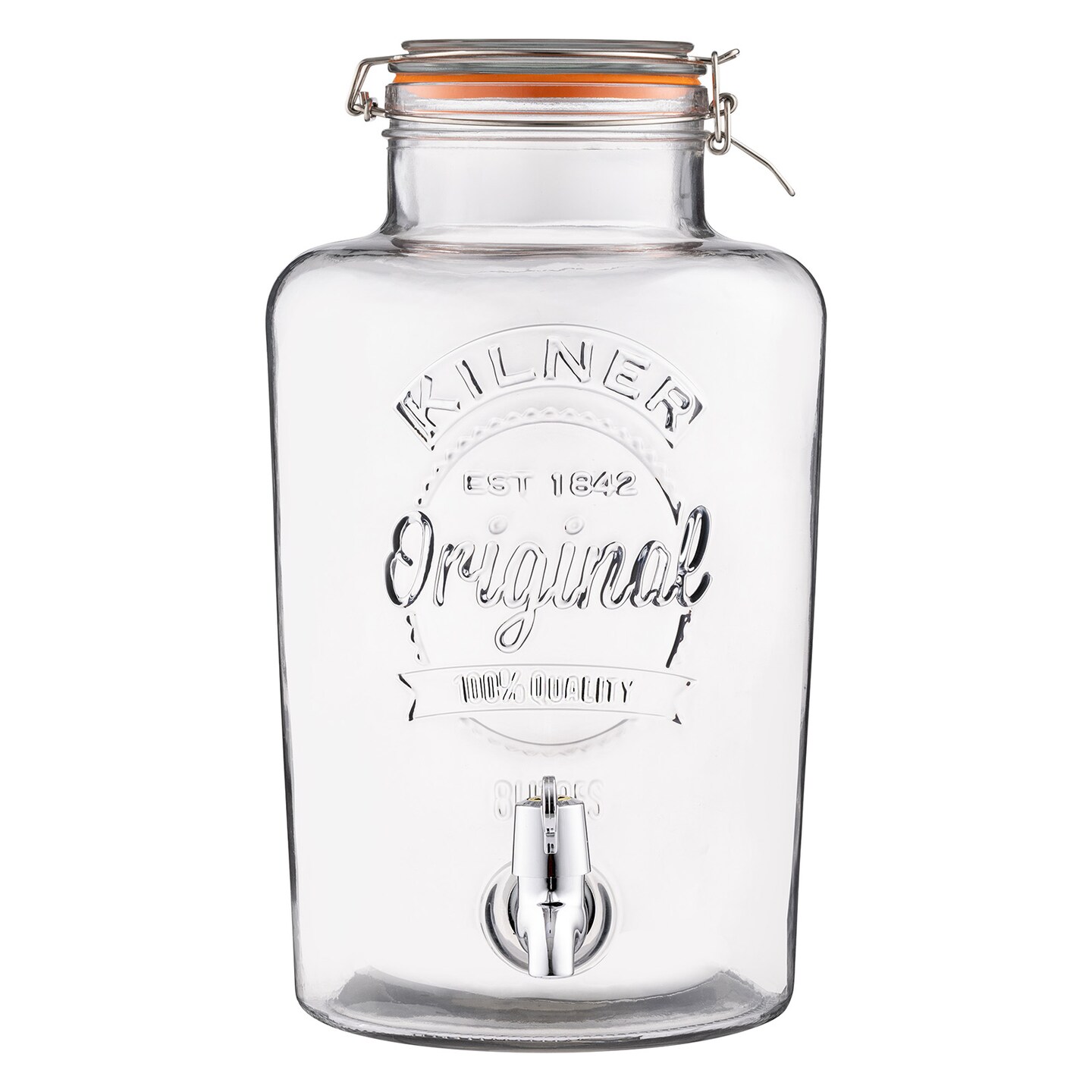 Kilner 2.1 Gallon Drink Dispenser, Large Glass Beverage Jar with Stainless Steel Tap