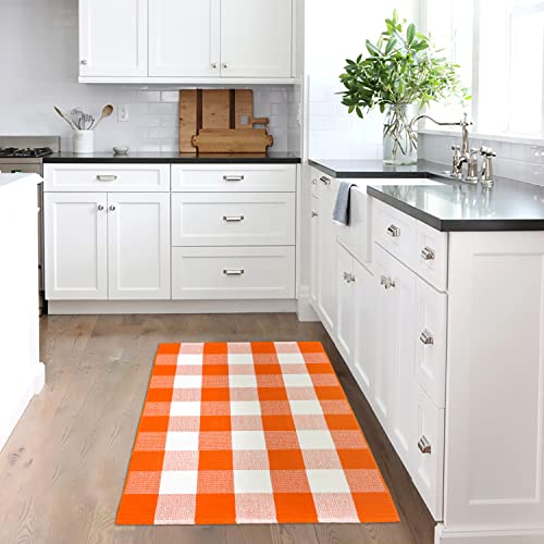 KILOCOCO Halloween Door Mat 27''x43'' Orange Outdoor Rug for Halloween/Thanksgiving Washable Fall Doormat Buffalo Check Rug Layered Front Door Mat for Porch/Farmhouse/Entryway/Patio Fall Decor