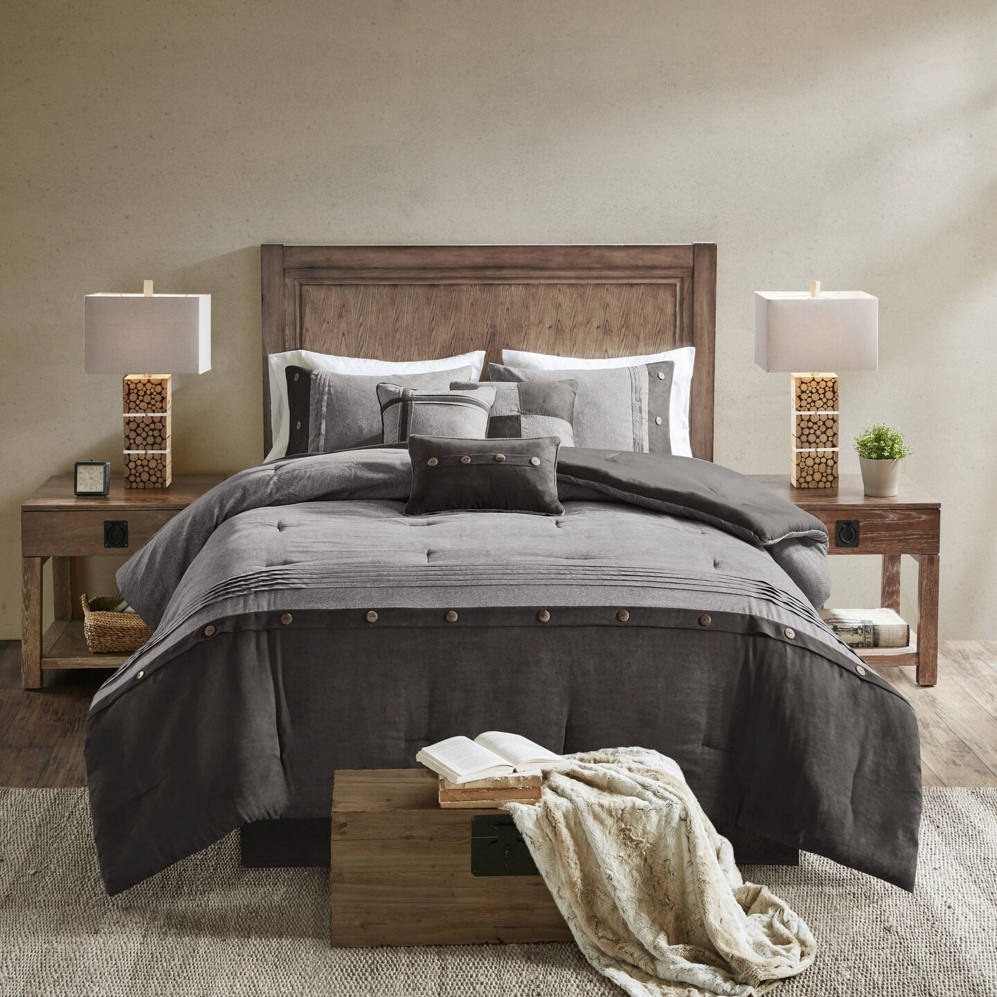 King Faux Suede Comforter Set 7 Piece