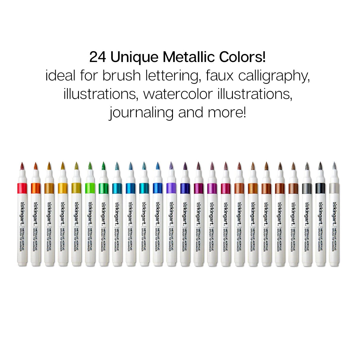 KINGART® Acrylic Brush Tip Markers, 24 Metallic Colors