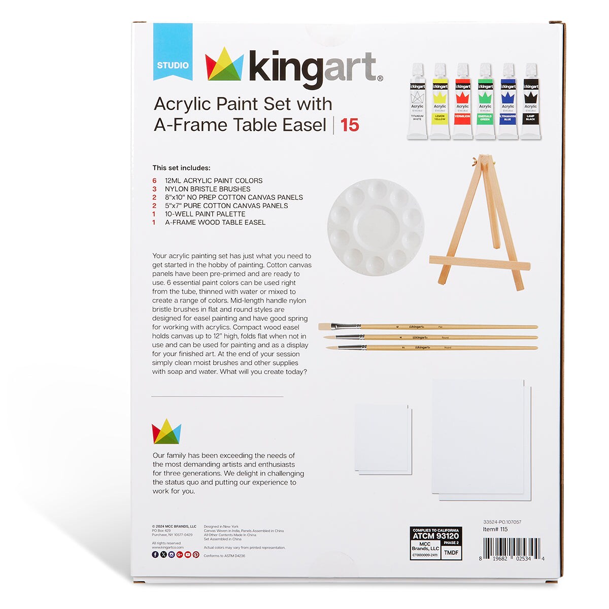 KINGART® Acrylic Painting Set with Tabletop Easel, 15 pc